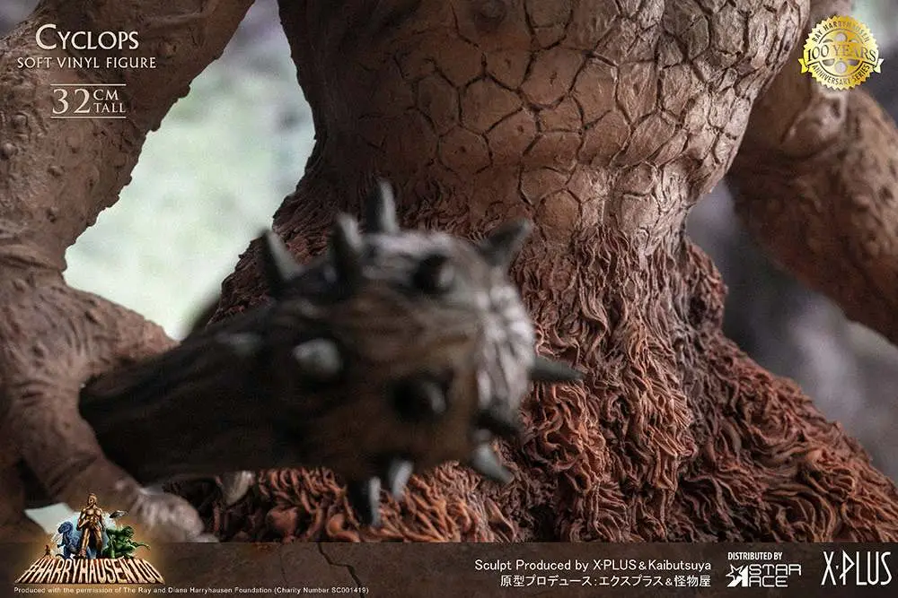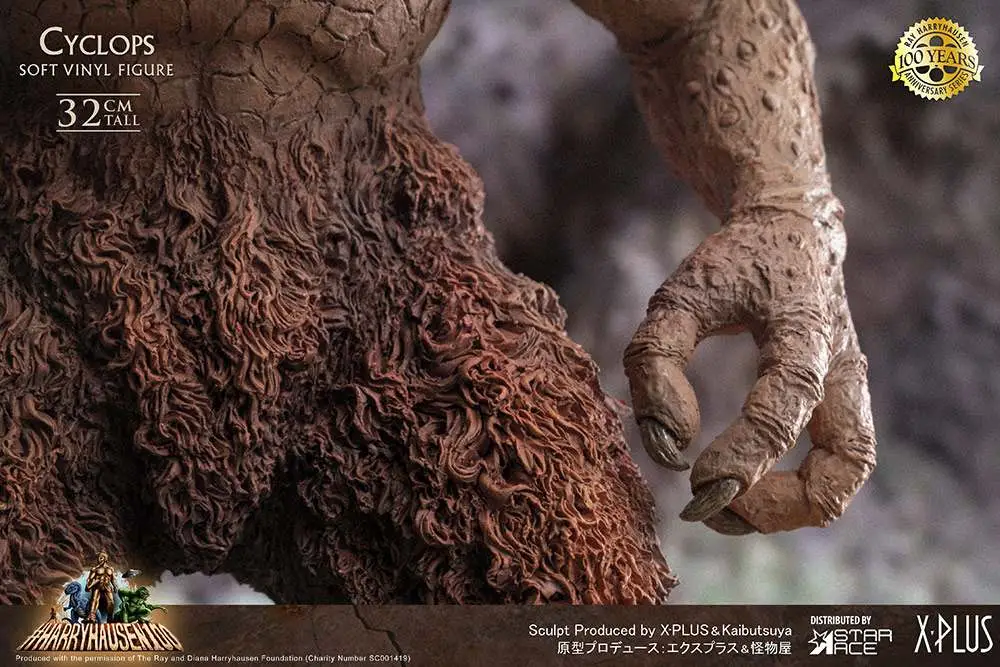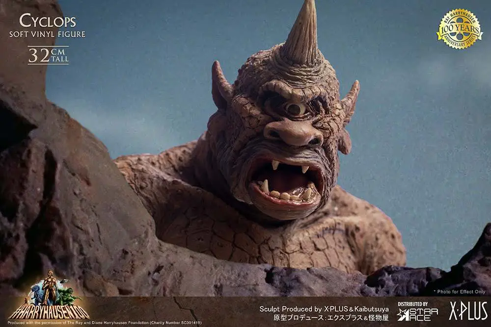This is the 100th Anniversary for Ray Harryhausen, the master of movie stop motion animation.  In his honor Star Ace is proud to release the Cyclops, the terrifying protector of the genie’s lamp in The Seventh Voyage of Sinbad.  He carries his huge, spiked battle club and his single eye can be rotated.  His jaw is articulated for different display options.