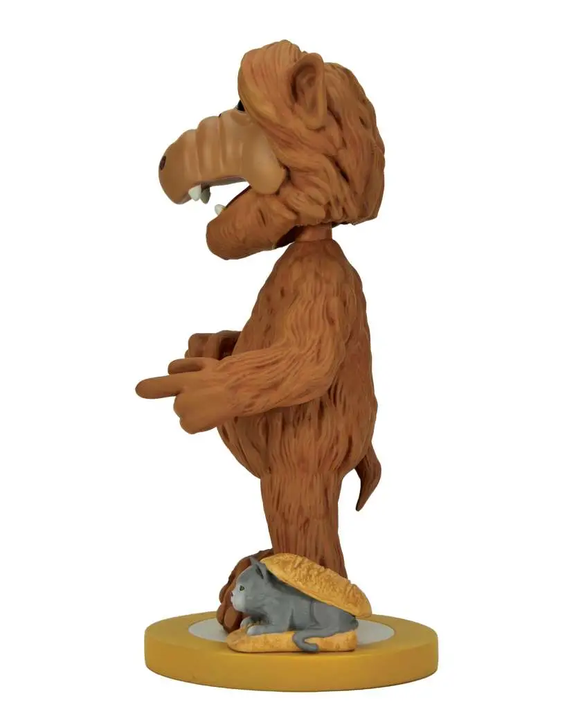 Bring home your own Alien Life Form with this new Alf Head Knocker from NECA! This addition to our popular Head Knocker line brings you the lovable alien from the planet Melmac, cast in resin and then hand painted for incredible detail, down to that adorable cat on a bun. Stands over 7.5 inches tall with bobbling head and comes in collectible matte packaging with spot gloss finish.