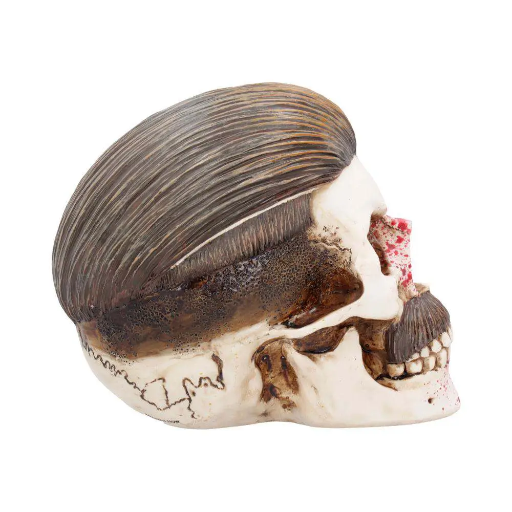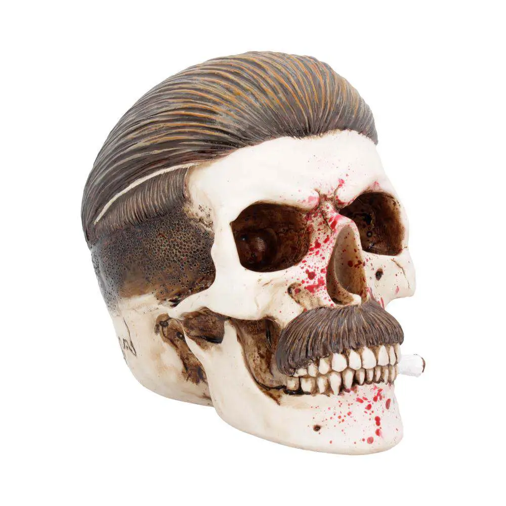 Mousy brown hair covers the top of this skull, cut into an iconic short back and sides style. A lit cigarette hangs out from his teeth, beneath a full moustache. As you move down the skull it looks like any other until your eye catches the vivid red splatter of blood that covers the front. Cast in the finest resin before being painstakingly hand-painted, this skull is perfect for anyone who has been one the wrong side of the law. Why not purchase our Tommy the Boss Skull to make the perfect pair?