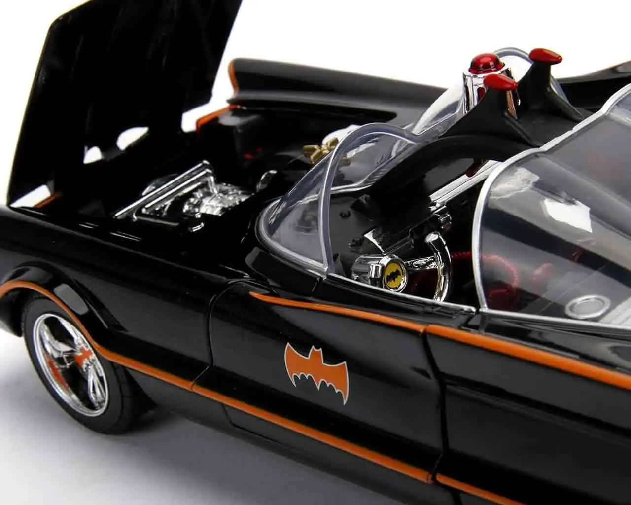 Cet exceptionnel modèle en métal moulé sous pression reproduit fidèlement la Batmobile de la série télévisée des années 1960.