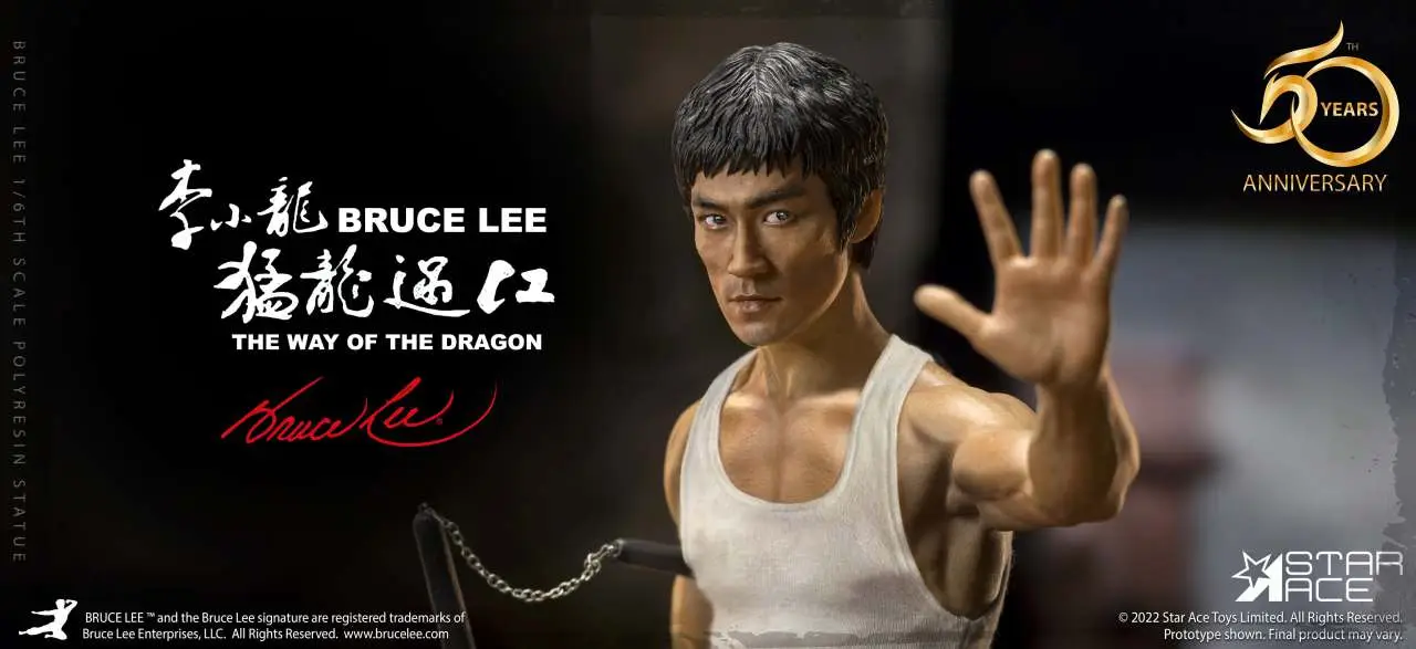 This one sixth scale vinyl statue of Lee depicts him in Way of the Dragon (ç��é¾ï¿½é��æ±ï¿½) and features a realistic fabric costume. Lee stands in his classic fighting stance with nunchaku at the ready.