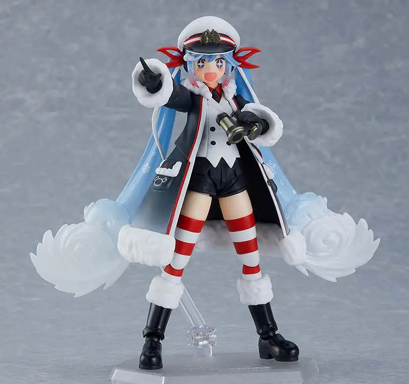 The adorable and strong Snow Miku dressed in her crab captain outfit, prepared to take on the rough winter seas, now in figma form!