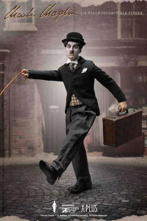 Star Ace is proud to present a deluxe collectible 1/6 articulated figure of the beloved “Little Tramp,” Charlie Chaplin. This detailed representation of Chaplin’s iconic character presents him as seen in multiple films from the early days of cinema, most notably in “The Pawnshop.”