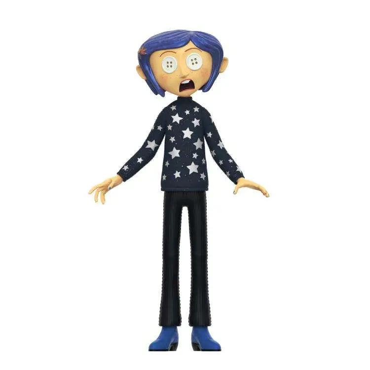 Has Coraline given in to Other Mother’s demands to adopt button eyes? Is this just a depiction of the Coraline doppelganger doll?? Is Coraline having a nightmare?! You decide, with the new Button Eyes Coraline SuperSize Vinyl figure! Inspired LAIKA’s Oscar-nominated stop-motion animated film of the same name, which celebrates its 15th anniversary in 2024, this 16” poseable soft vinyl figure features premium soft vinyl construction, intricate paint and sculpt detailing - including glow-in-the-dark button eyes - and comes with a soft goods sweater with silver, glow-in-the-dark stars. Any fans of the film will know that this Button Eyes Coraline SuperSize Vinyl figure will be a frightfully good addition to your collection!