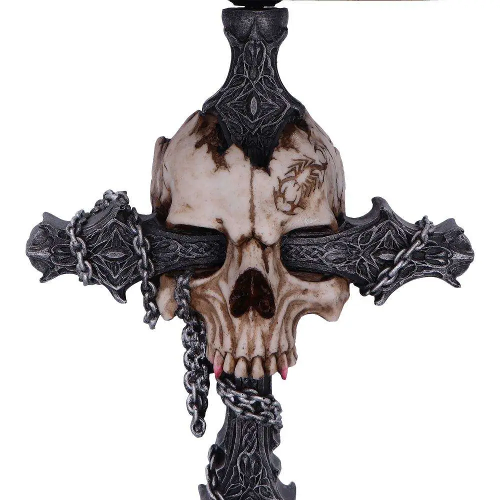 Ideal for gothic home decor enthusiasts, alternative style collectors, horror fans, and lovers of dark religious symbolism.