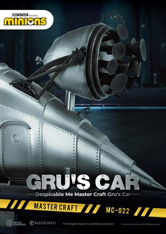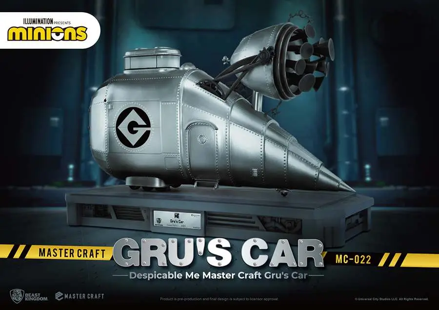 Beast Kingdom presents the latest masterpiece from the world-renowned Master Craft series. Based on the popular film “Despicable Me”, this piece portrays Gru with the Grumobile. In the film, this special vehicle helmed by Gru contains an array of technologically advanced equipment and weaponry. Naturally, the massive rocket that propels the Grumobile to top speed in a matter of seconds is presented in perfect detail. As always, the exquisite craftsmanship of the Master Craft series is on full display. The product is handcrafted with great attention to reproducing Gru and his vehicle as they appear in the film. The Grumobile sits on a platform that has received the same attention to detail as the vehicle.