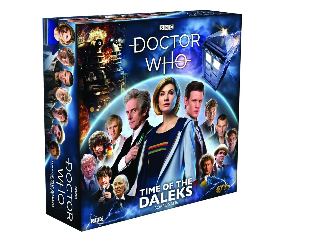 Doctor Who—Time of the Daleks is a semi co-operative boardgame where you become one of four regenerations of the Doctor, travelling through time and space to stop the Daleks from erasing the Doctor from time and taking over