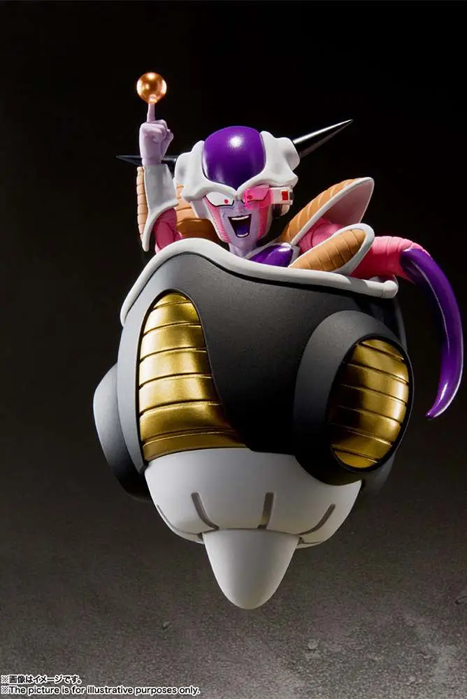 Frieza arrive enfin en S.H.Figuarts dans sa première forme et avec son iconique Pod. La figurine peut être sortie du Pod et le scouter détachable. Le set comprend 5 visages différents, effet pour la Supernova, boule de cristal de Namek numéro 5, scouter, pod, socle et mains interchangeables.