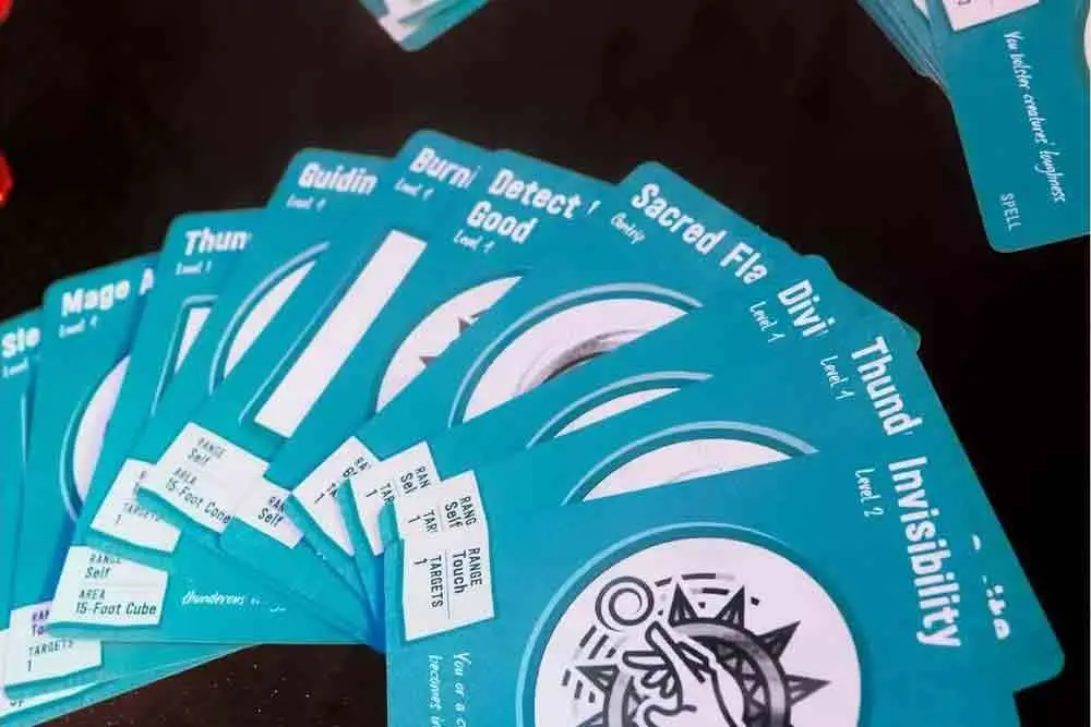 Écran du Maître du Donjon, Poster Hellfire Club recto-verso, 91 cartes pour sorts, objets magiques et monstres, 72 jetons pour personnages et monstres, 2 cartes poster recto-verso, 15 fiches de personnage, 4 aides de jeu, bloc de suivi des combats, set de 11 dés, guide de démarrage rapide, 4 livrets d’aventure, 1 livret de jeu