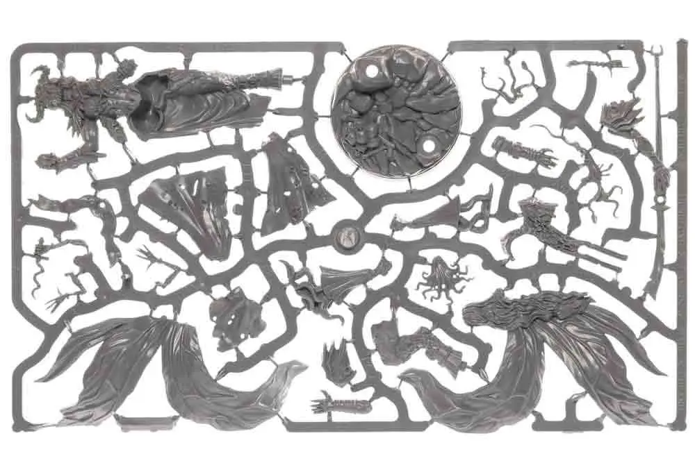 2 figurines : 1x Anara, la Reine Immortelle (grande figurine – hauteur 120 mm sur socle de 50 mm), 1x Dévoreur de Sanité (figurine sur socle de 25 mm)