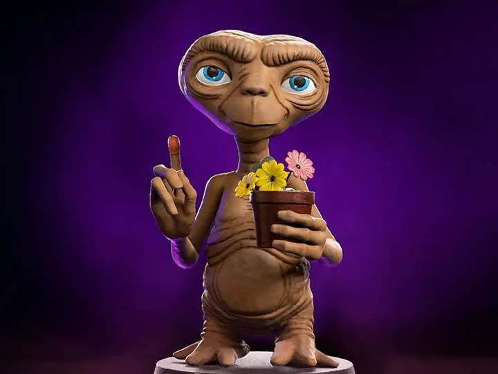 In the year it completes its 40-year anniversary since its premiere on the big screen, Iron Studios proudly presents their statue of E.T., a tribute to fans and to the movie masterpiece. With his expressive big blue eyes and a smile filled with gentleness, the small and lovely visitor from another world holds in his left hand a flowerpot, something special for him as an alien botanist, while he gestures with his right hand’s big fingers, using his telepathic abilities to revive the flowers just like in the movie scene that made him loved and known in the entire world.