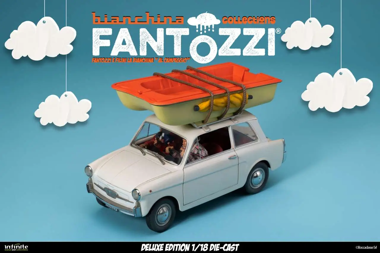 Infinite Statue & Collectibles presents the La Bianchina Collection by Fantozzi, three 1/18 scale models  made of die-cast and ABS. Each Bianchina is faithfully reproduced in the colors, shapes and proportions of the cars seen in the films, with real functions such as opening doors, steering wheels and attention to interior details.