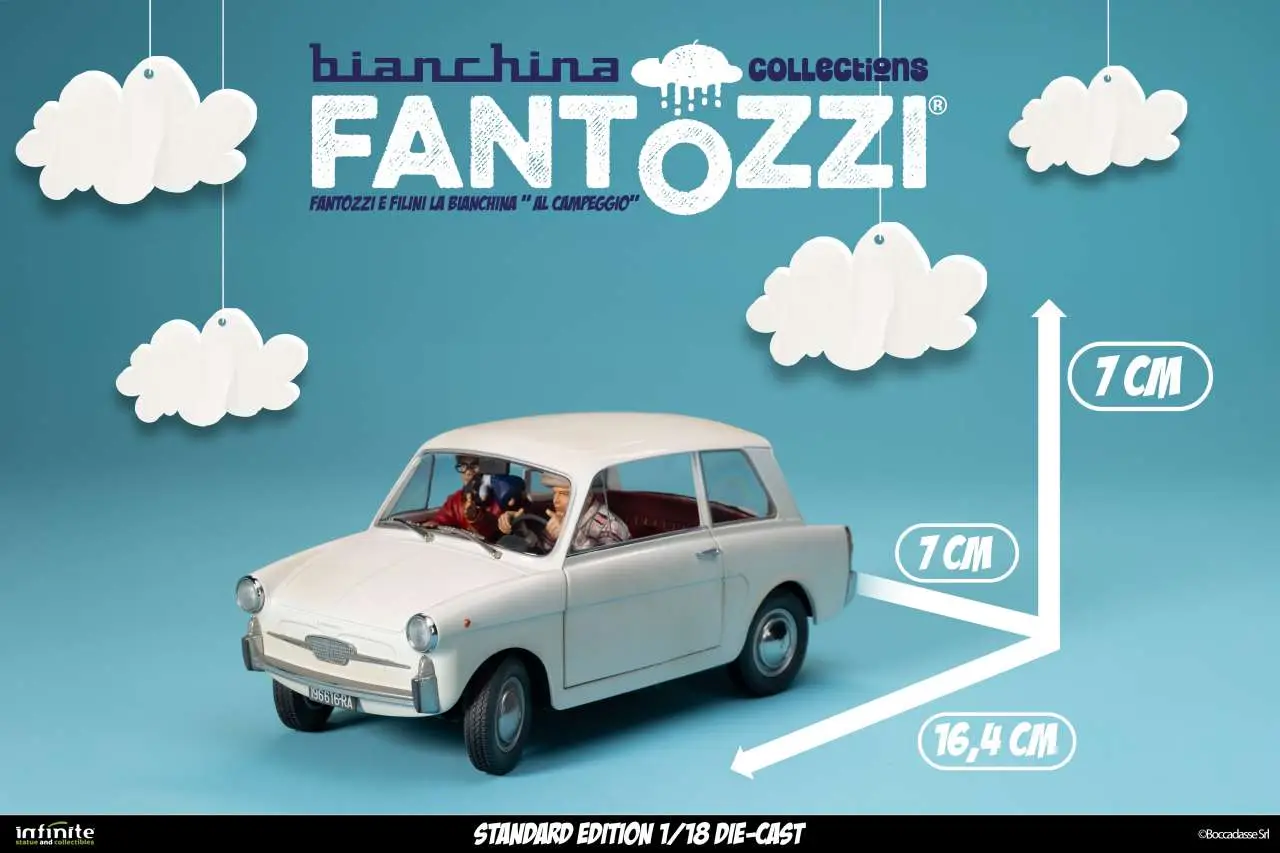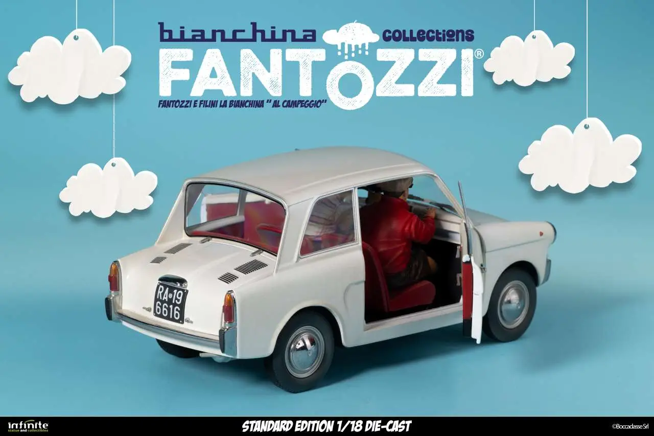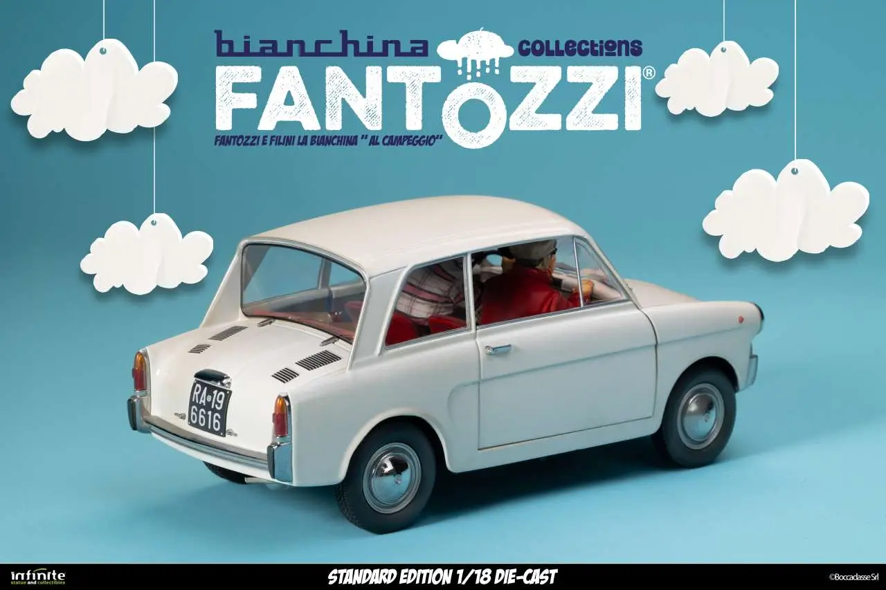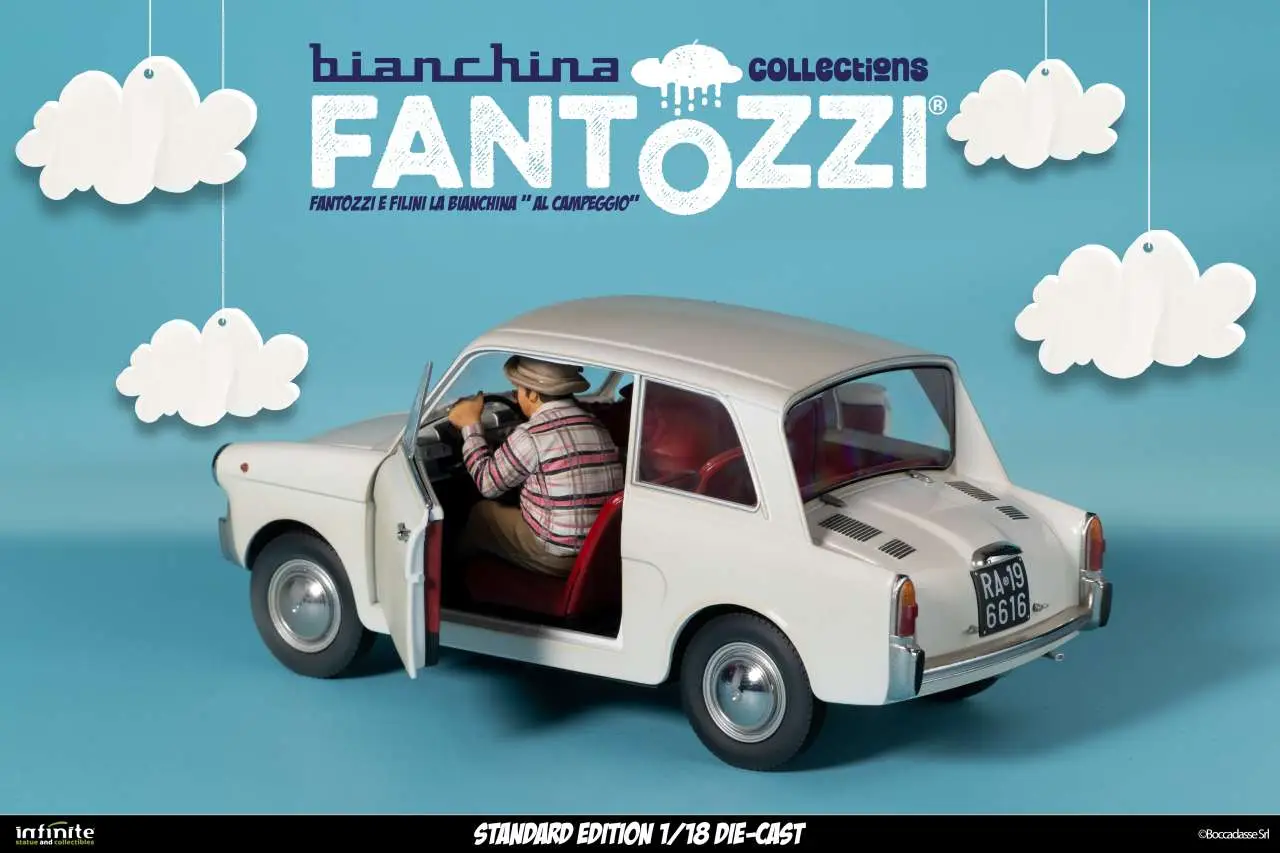 Infinite Statue & Collectibles presents the La Bianchina Collection by Fantozzi, three 1/18 scale models  made of die-cast and ABS. Each Bianchina is faithfully reproduced in the colors, shapes and proportions of the cars seen in the films, with real functions such as opening doors, steering wheels and attention to interior details.