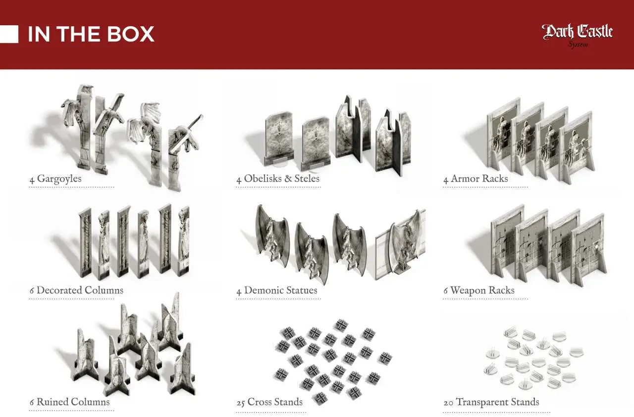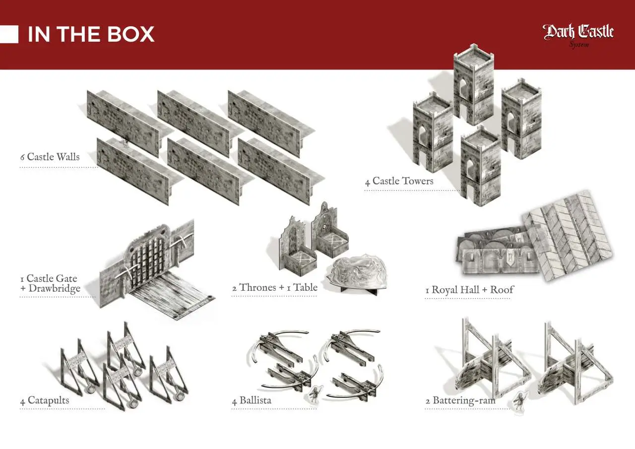 Dark Castle is the expansion of Dungeon & Town that allows you to build an entire castle including walls, towers and accessories. Fully compatible with all parts of Dungeon&Town.