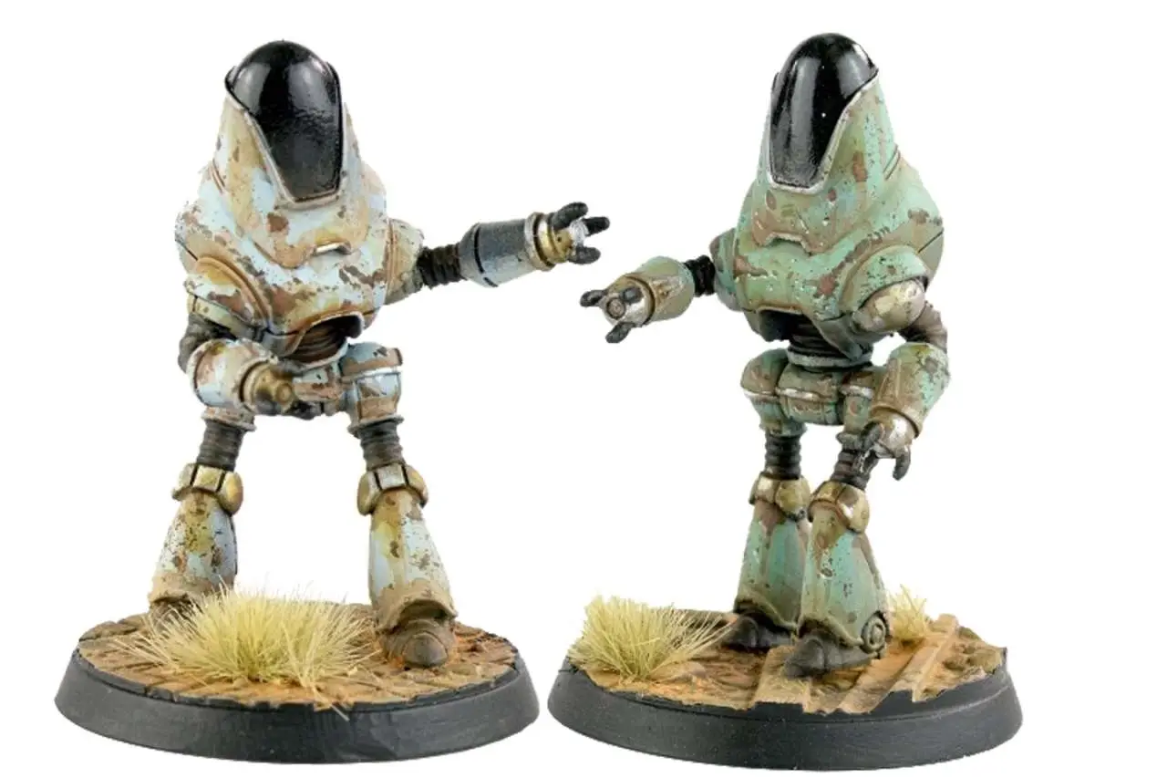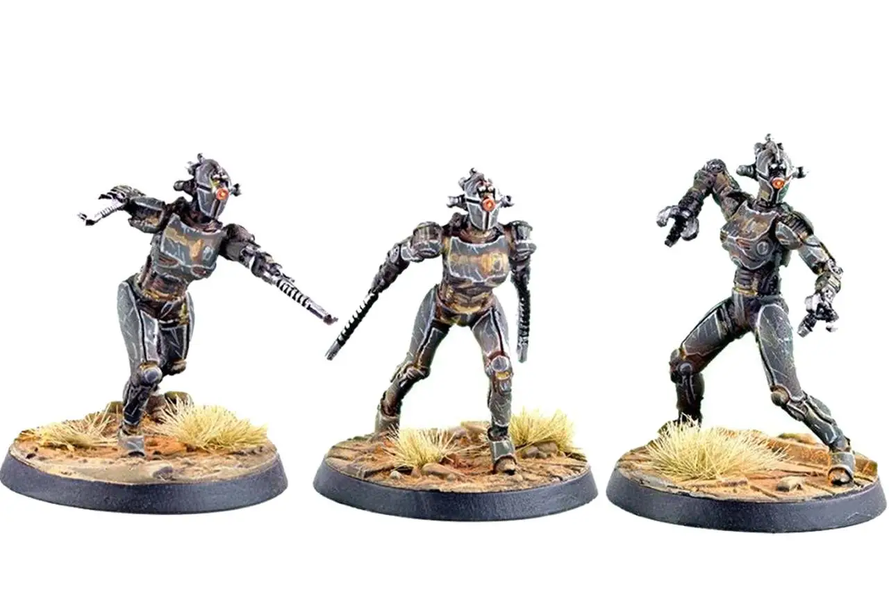 This boxed set contains five 32mm scale multi-part high quality resin Robot miniatures, each with unique scenic bases, to allow players to expand their Fallout: Wasteland Warfare games.
