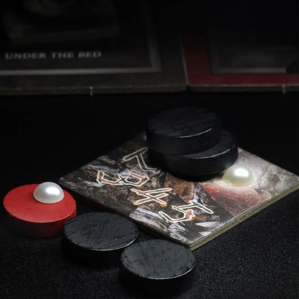 Hako Onna is a game of horror hide-and-seek, translated from the 4th edition of the popular Japanese game. One player plays the “Hako Onna” (the Woman in the Box), and the rest are “Visitors”, who are trying to escape from the mansion. As Visitors, you’ll try not to make noise as you search the shadowy rooms of the mansion for items to protect yourself, for information, and for a way to escape what you do not see, but know is there. But if you stumble upon the Hako Onna, you’re dead.