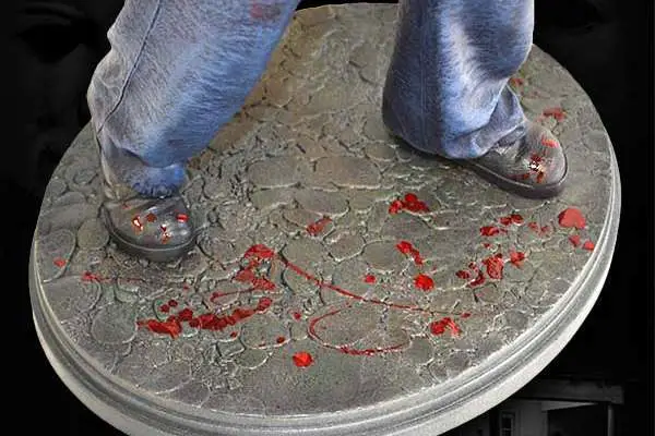 This amazingly detailed 1:4 scale statue captures the psychotic killer in classic pose – bloodied knife in hand attacking his latest victim!