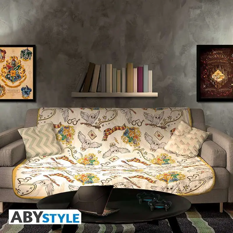 Find all the iconic elements of Harry the wizard on this Harry Potter throw by ABYstyle.