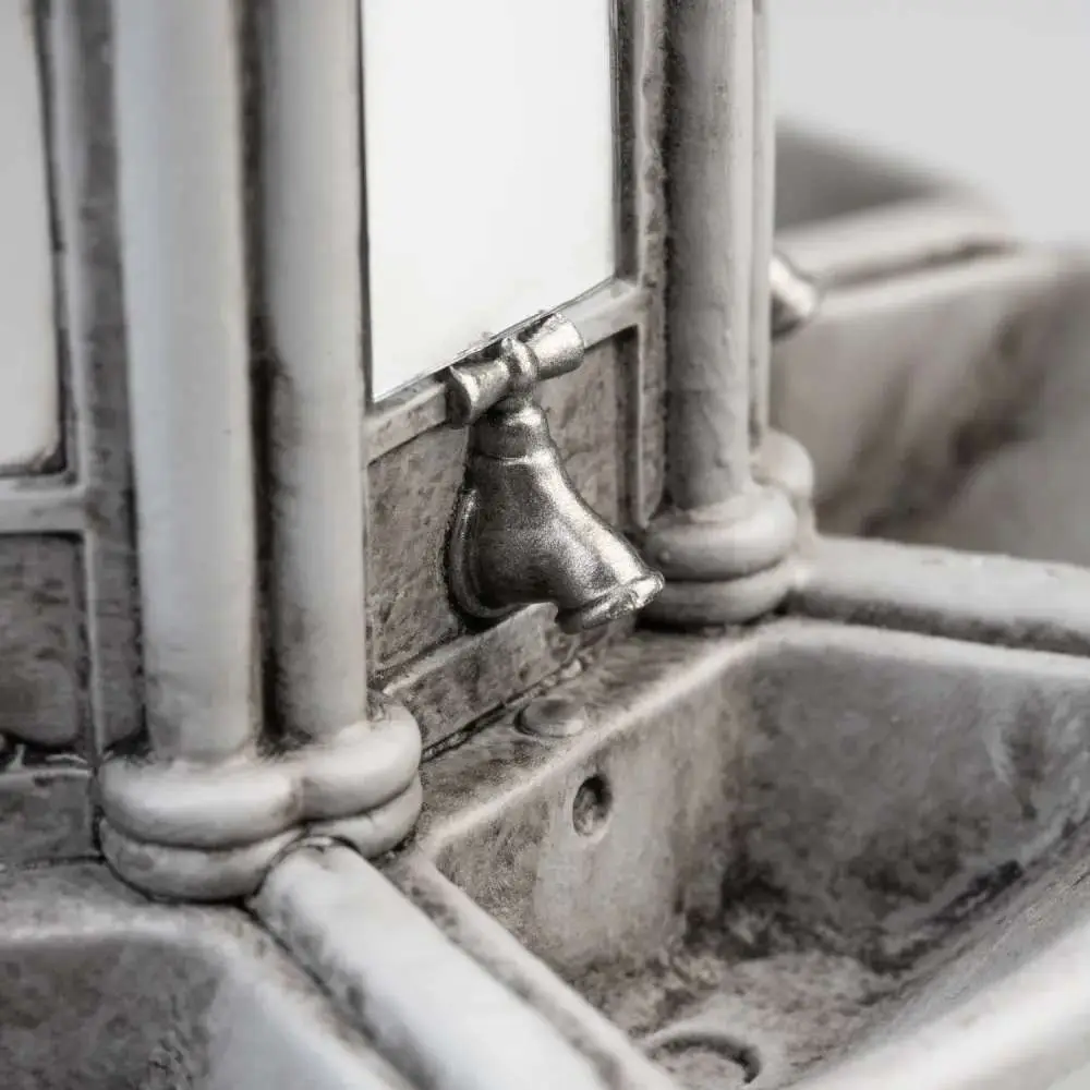 Set consisting of a 3D desktop pen holder and a writing set. The pen holder is made of resin, hand-painted, and measures 12.8 x 12.6 x 12.8 cm. The writing set includes two pens (one with black ink and one with blue ink), one pencil, one eraser, and one pencil sharpener, all decorated and in keeping with the license theme.