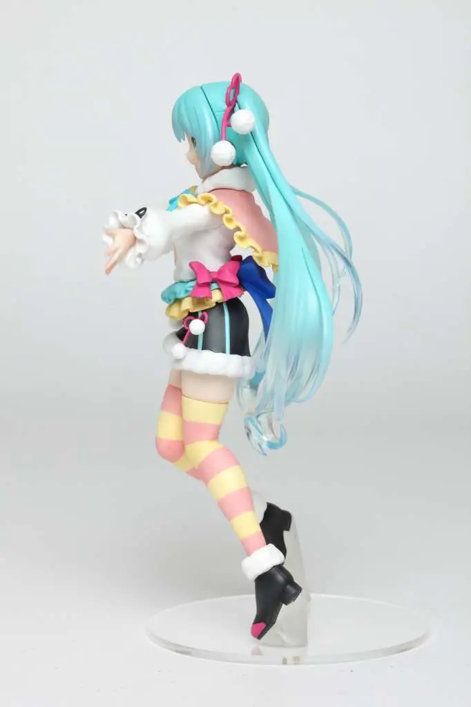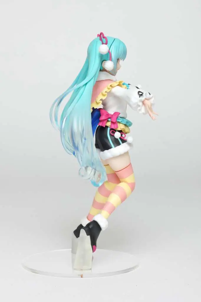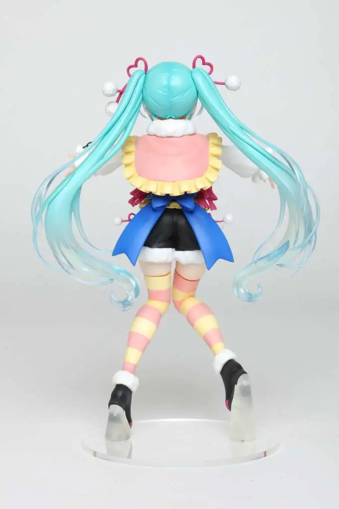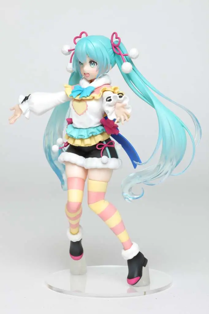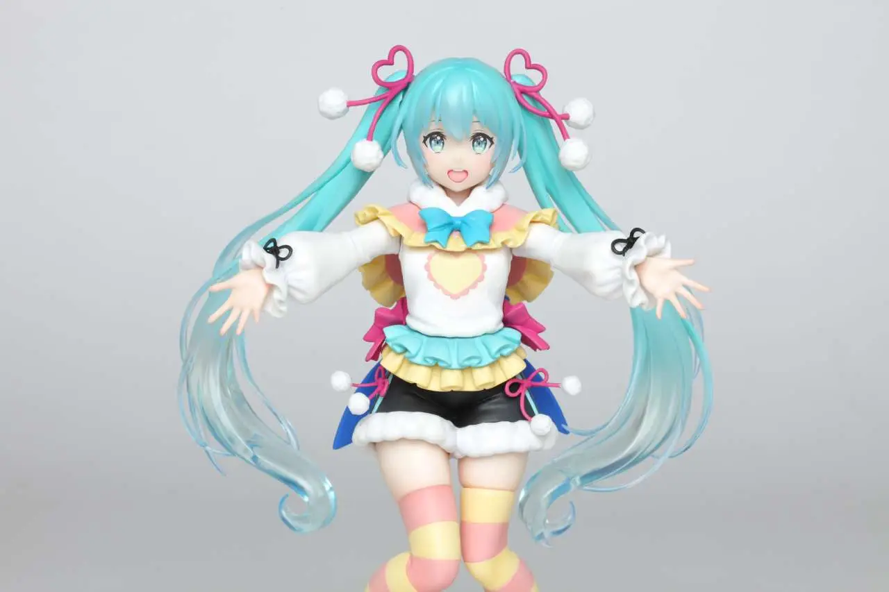 This adorable prize figure features the famous digital pop singer dressed up for Winter! Miku stands about 7 inches tall in her decorative top with heart shaped ribbons in her hair.