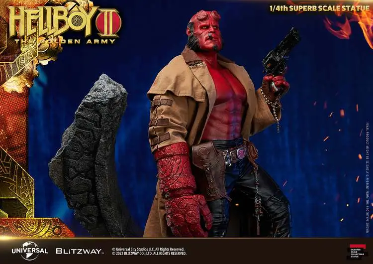 Hellboy is equipped with the 'Samaritan’, the 'Big Baby’, a utility belt, and a coat that looks realistic, perfectly recreating the feel of the movie.
