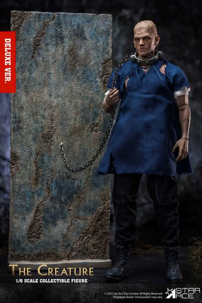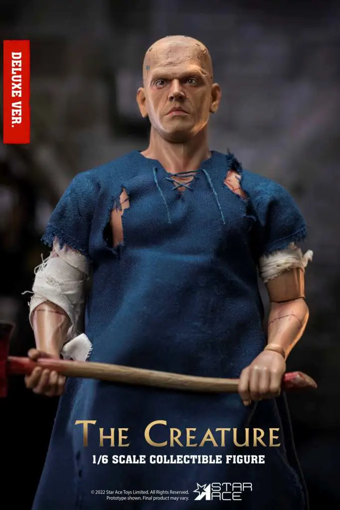 Hammer Films reinvented the classic monsters more than once. Star Ace presents their version of Frankenstein’s monster from the 1970s. This 32cm tall 1/6 scale figure is fully articulated and features a portrait of Dave Prowse as the Creature. His costume is styled after the original look and he comes with a severed head in a jar, a bloody axe, a neck chain, lab equipment, multiple hands and a cloth drape.