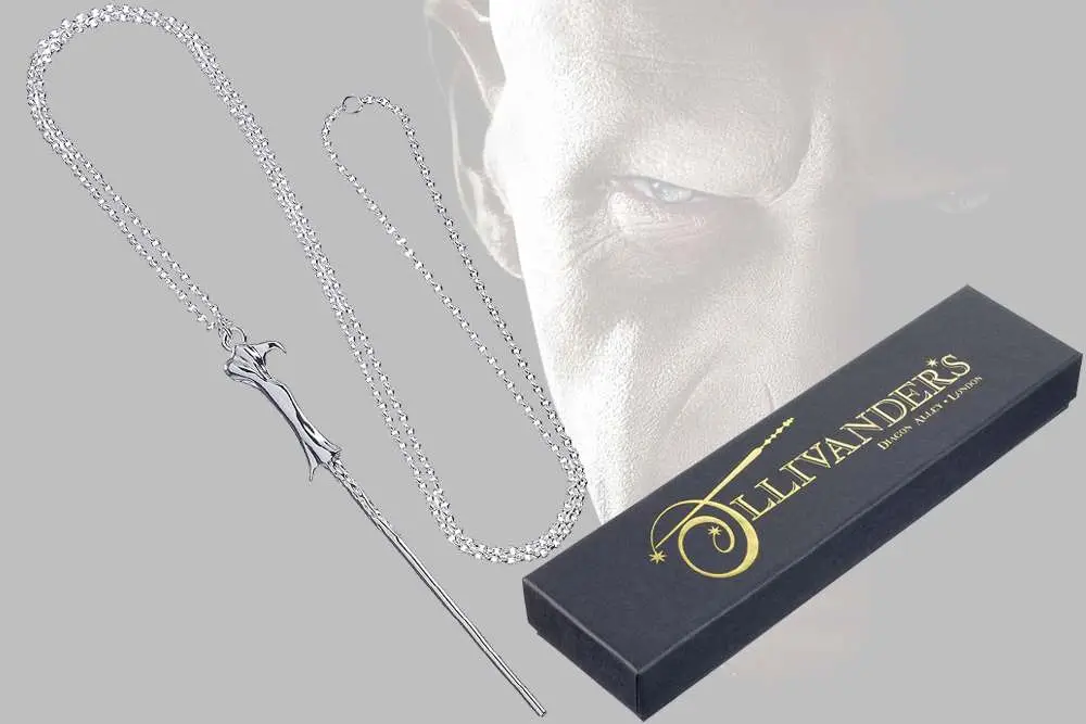 Necklace with wand shaped pendant. The wand pendant is approx 12cm Long necklace of 85cm.  Silver Plated. Gift Box