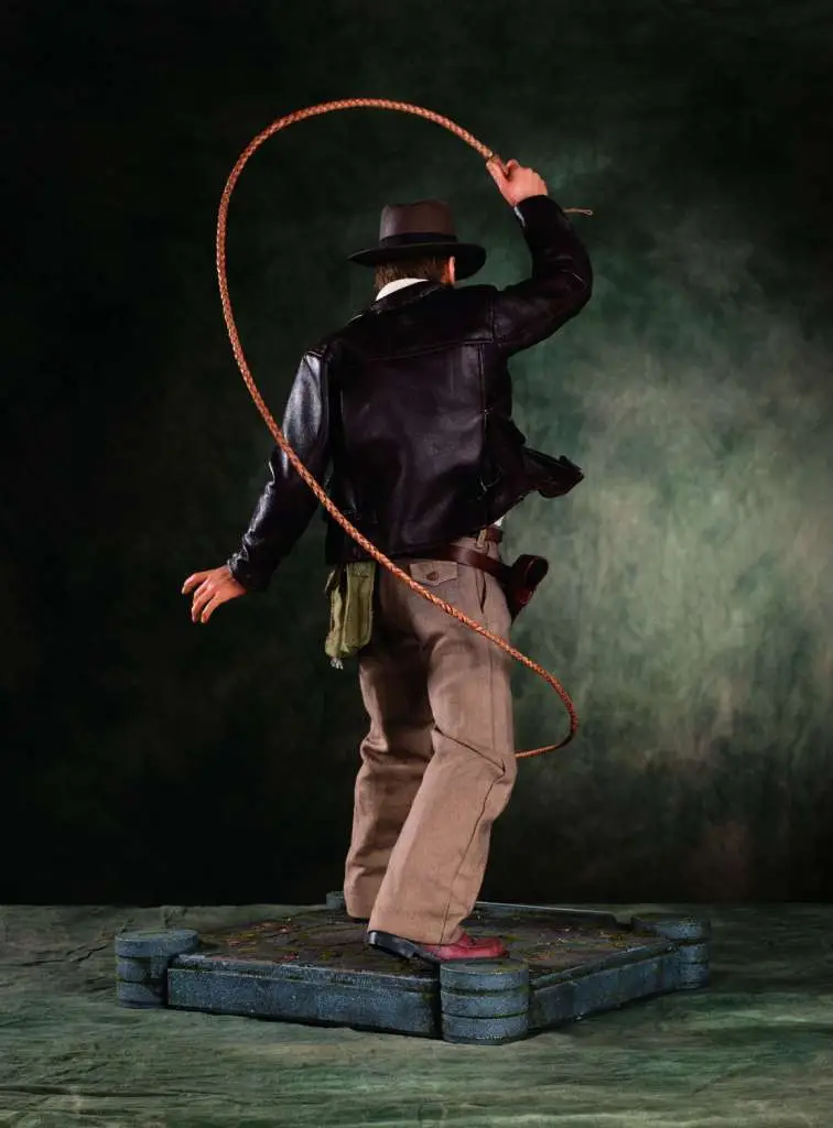 If adventure has a name, it's Indiana Jones! The world's most famous archaeologist leaps into action with this newest edition in the CINEMAQUETTE series! Constructed of polyurethane composite with realistic silicon skin, Indiana Jones' head is individually punched with real human hair and features film-accurate clothing, weaponry and equipment, from his trusty revolver to his famous bullwhip, authentic in every detail.