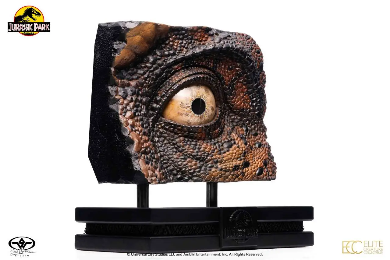 Elite Creature Collectibles is proud to present this Screen Used SWS T-Rex Eye Reproduction as our new movie prop reproduction of the Jurassic Park franchise. With paint masters, and step-by-step guidance from key Stan Winston Studio artist Rob Hinderstein, as well as hands-on access to the original SWS T-Rex Eye prop, ECC key artist Oskar Ankarudd and ILM artist Bitan were able to faithfully recreate all the wonderful details and leverage full-color 3D-printing technology to produce these stunning T-Rex eyeballs!