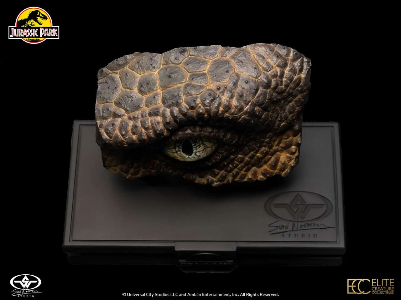 Elite Creature Collectibles is proud to present this Velociraptor Eye Prop Replica as our newest reproduction from the Jurassic Park franchise. With paint masters and step-by-step guidance from key Stan Winston Studio artist Rob Hinderstein, as well as hands-on access to the original SWS Raptor Eye prop, ECC key artist Oskar Ankarudd and ILM artist Bitan were able to faithfully recreate all the wonderful details and leverage full-color 3D-printing technology to produce this stunning Raptor eyeball!