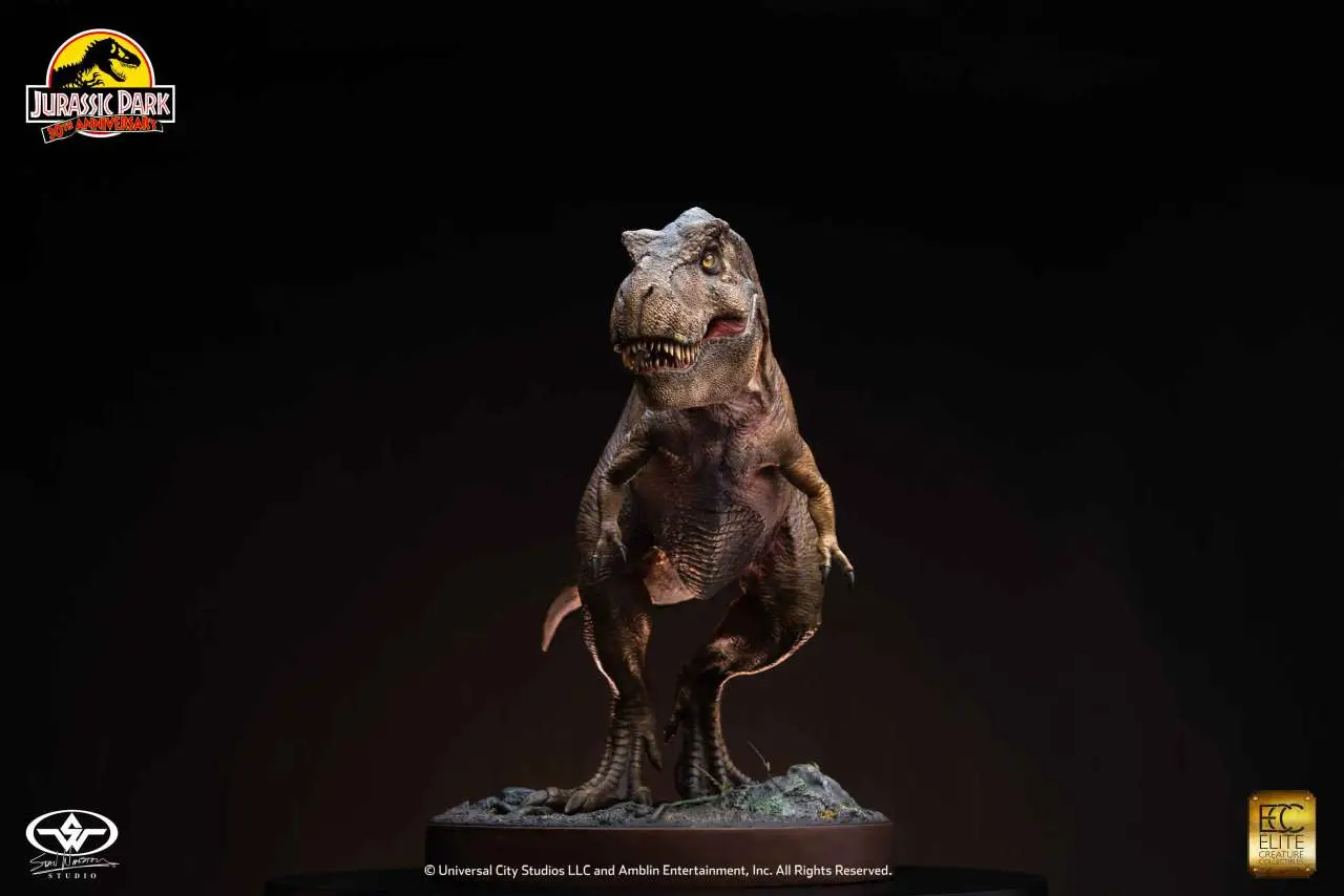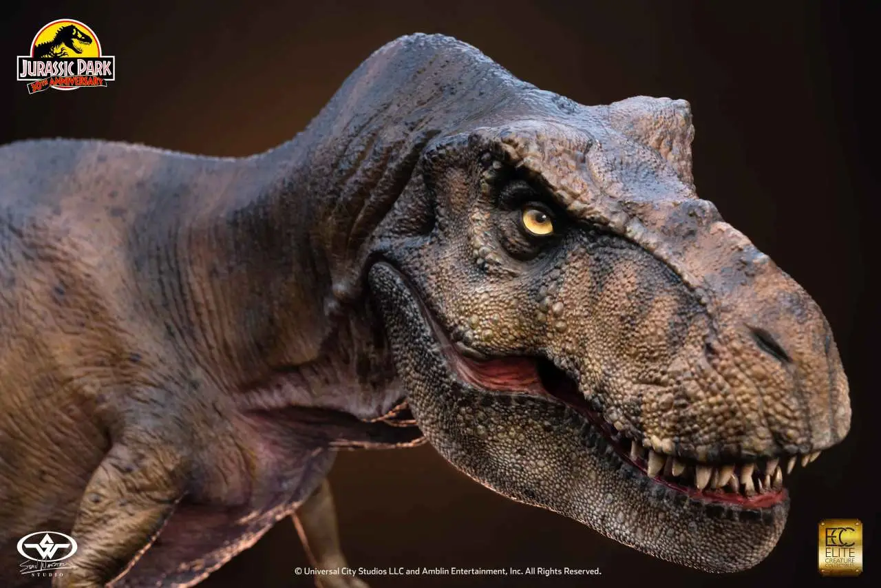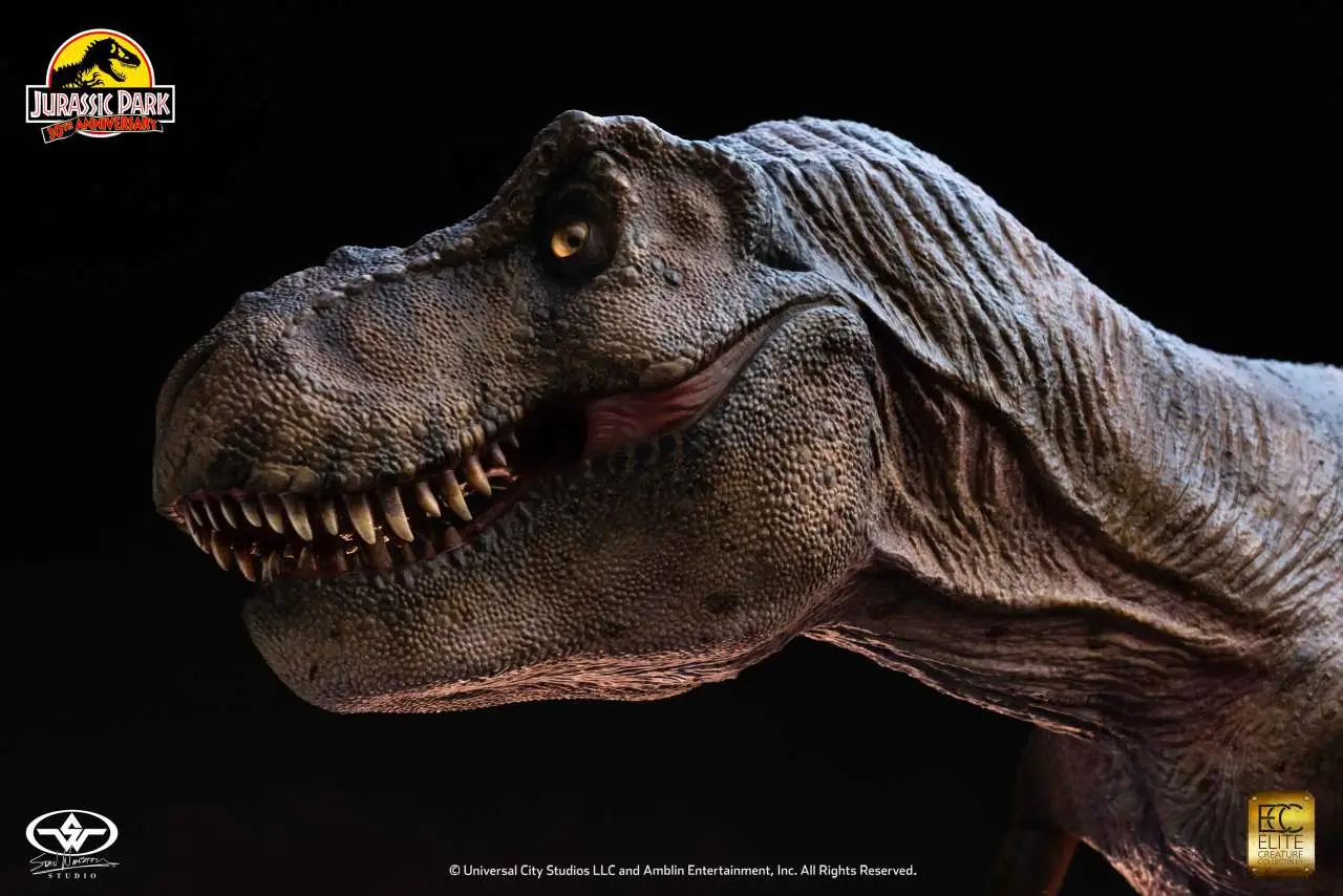 Elite Creature Collectibles is proud to present a 1/12 Scale Tyrannosaurus Rex from Jurassic Park (1993) in collaboration with key Stan Winston team members. With hands-on access to the SWS maquette used to provide proof of concept to Steven Spielberg and high-resolution 3D scanning, ILM artist Bitan faithfully recreated the original T-Rex from the movie. This maquette is painted by SWS Jurassic Park key artist Joey Orosco and ECC key artist Oksar Ankarudd. With its incredible details, you may even find features that were impossible to see on the silver screen.