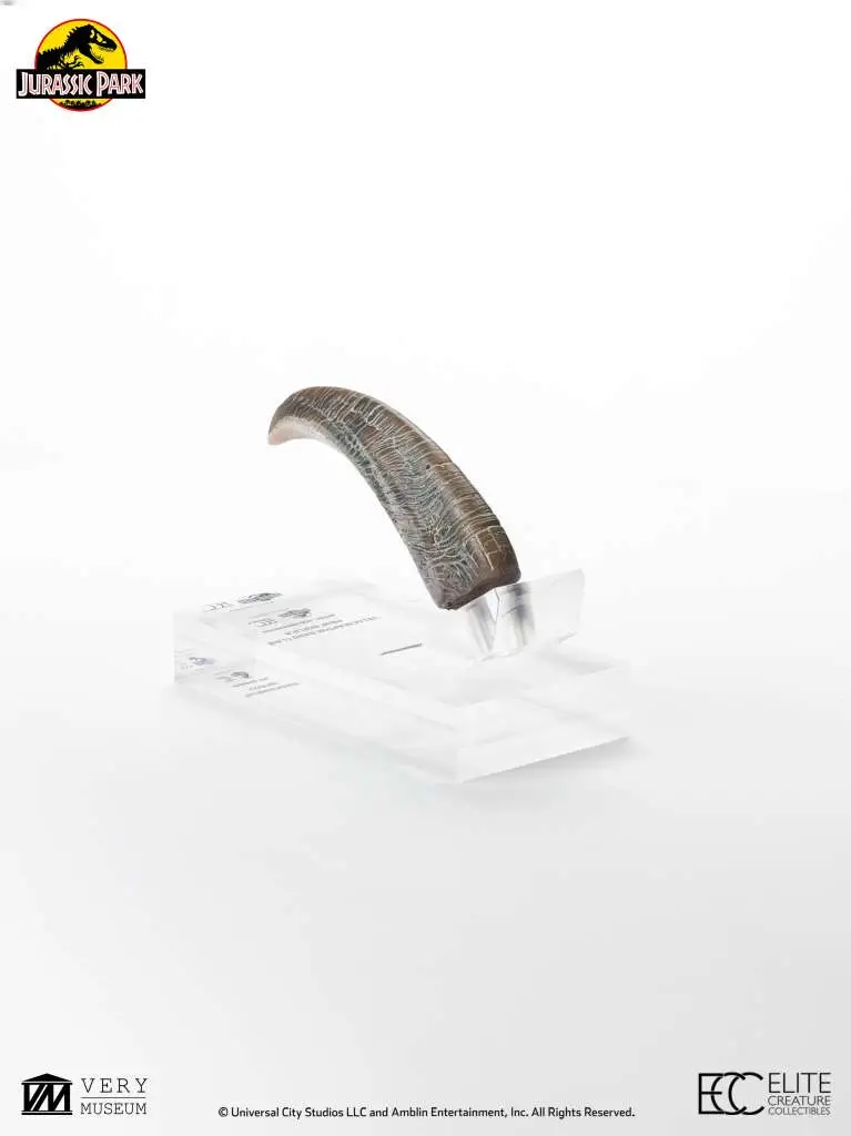Elite Creature Collectibles is proud to present this Velociraptor hand claw reproduction (the largest of the three) as part of our new movie prop collection for the Jurassic Park franchise. The claw casting was taken from the original mold and was retouched and painted by Oskar Ankarudd. The claw is displayed on a prop auction-style acrylic base and can be removed from the base.