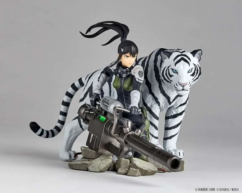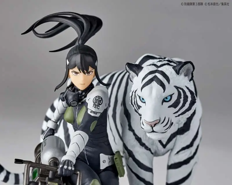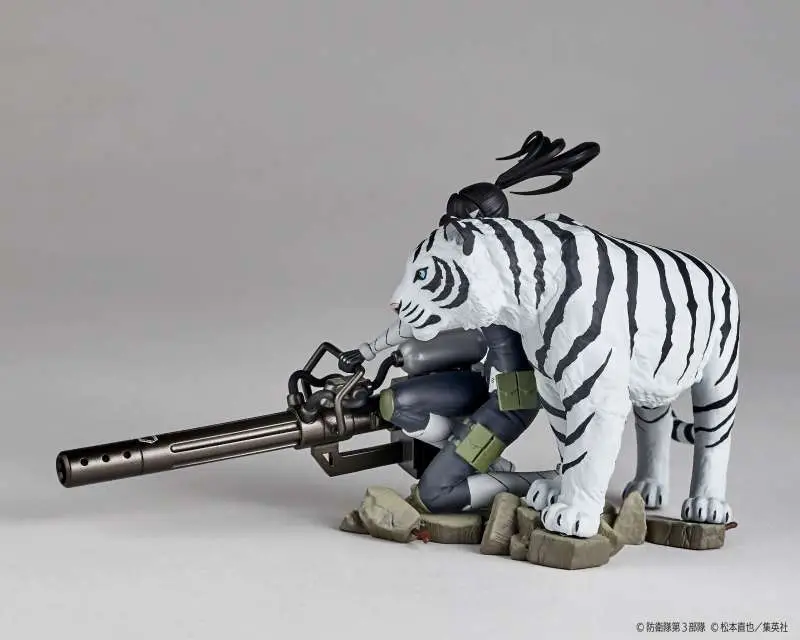From the anime Kaiju No. 8 comes a detailed 1/18 scale figure depicting Mina Ashiro and Bakko ready for a fight. The figure stands over 3 inches tall with the pair side by side while Mina brings her giant gun to bare.