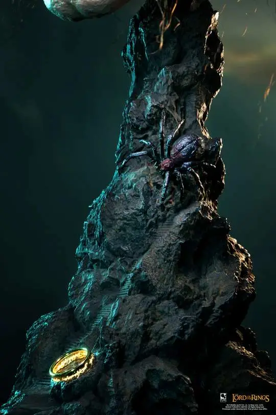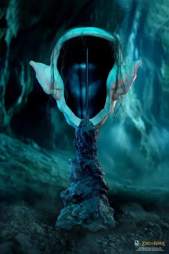 PureArts realizza una "maschera" iperrealistica in scala 1/1 di Gollum, completa di pelle in silicone, occhi in vetro e capelli sintetici. Riproducendo il famigerato momento in cui Gollum conduce Frodo e Sam alla tana di Shelob, questa art mask di Gollum in scala 1/1 si trova sopra una base che ricrea le scale di Cirith Ungol con il suo prezioso Unico Anello e una scritta nera illuminata a LED. Il quinto capitolo della collezione PureArts del Signore degli Anelli è destinato a diventare il pezzo più prezioso della vostra collezione del Signore degli Anelli!