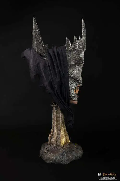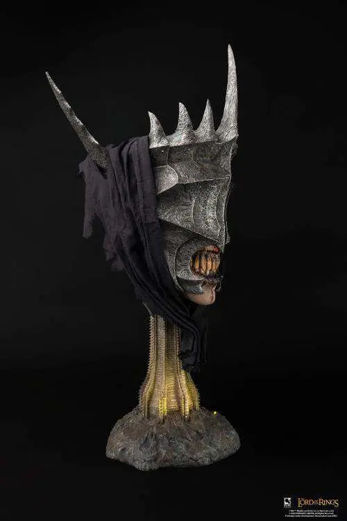 He was one of the few servants of Mordor who communicated directly with Sauron, and now he is our third The Lord of the Rings collectible! Our The Lord of the Rings Mouth of Sauron 1:1 Scale Art Mask is a highly impressive and imposing collectible. He grins ominously atop an LED-lit Mordor Gate Tower base, the location where he greets Aragon and his army.