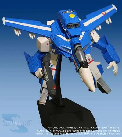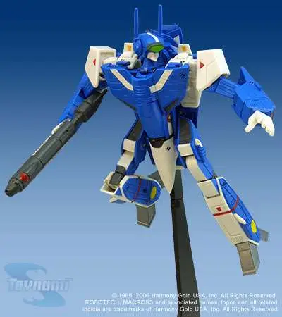 Introducing Toynami’s newest innovation: the Macross 1/100 Scale Transformable! Each fully transformable action figure stands approximately 6 inches tall and is fully articulated! Fully transformable into three modes: Fighter, Guardian and Battloid. Includes gunpod weapon accessory and adjustable display stand.