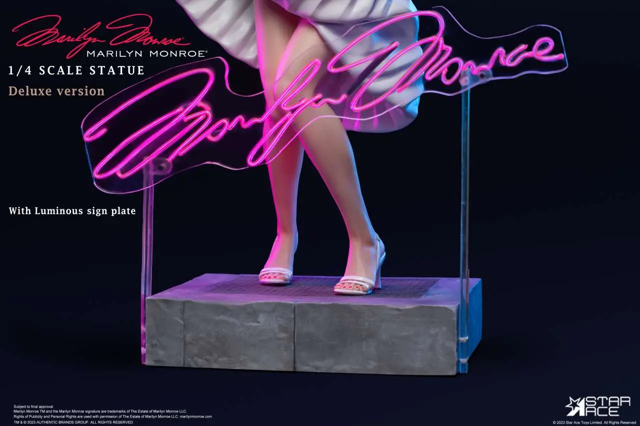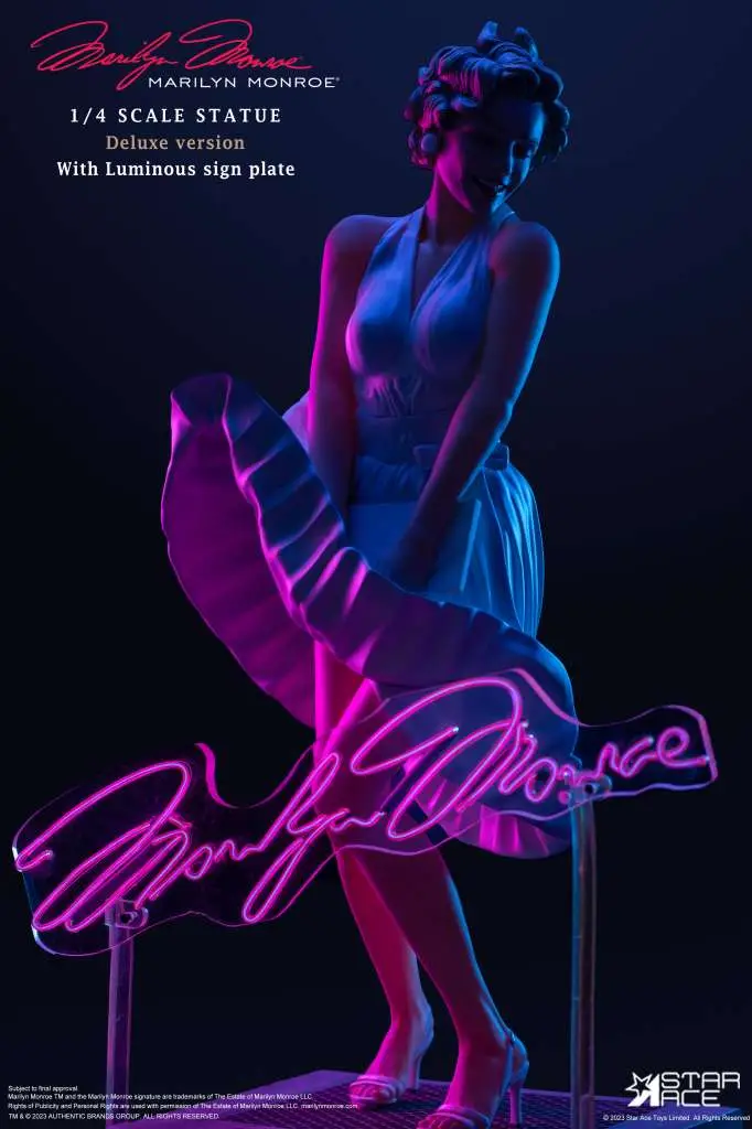 Introducing a new Star Ace quarter scale statue – Marilyn Monroe in her iconic white dress! Capture the timeless allure of Hollywood’s golden era with this exquisite quarter scale statue featuring the legendary Marilyn Monroe in her unforgettable moment over the subway grate. This stunning piece is a tribute to this iconic scene, where Marilyn’s white dress billows in the warm air, creating a memorable cinema moment.