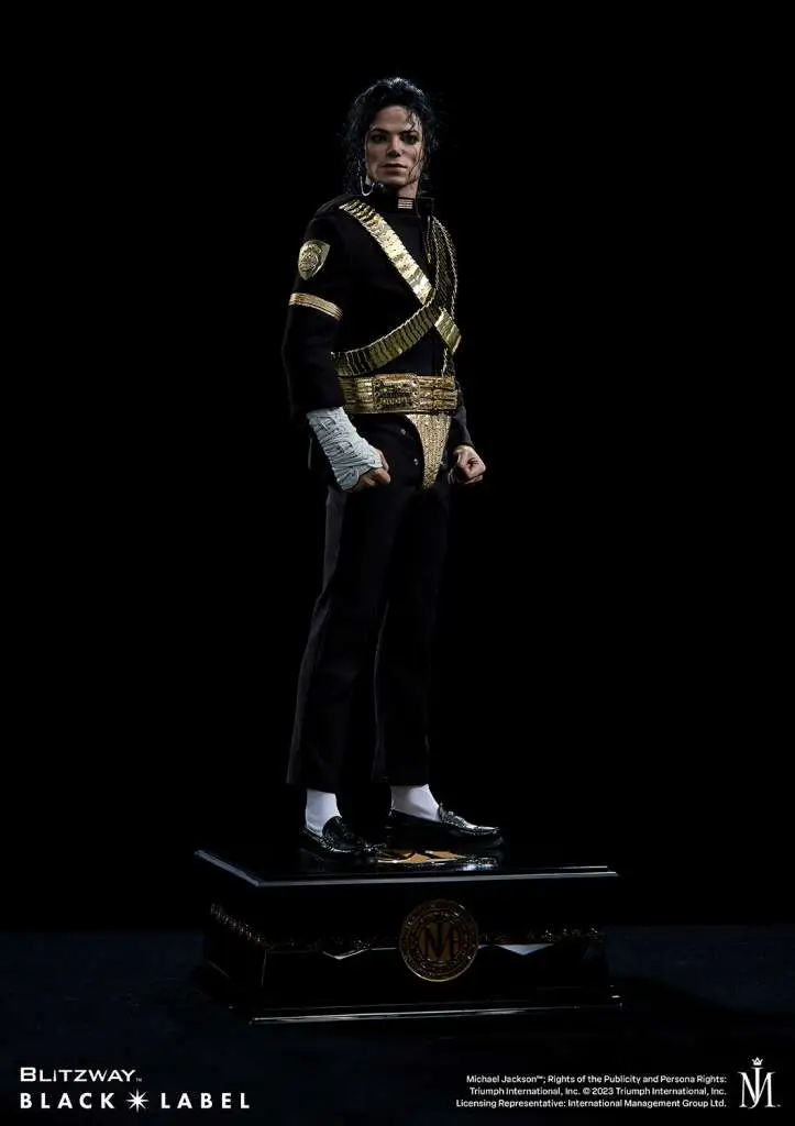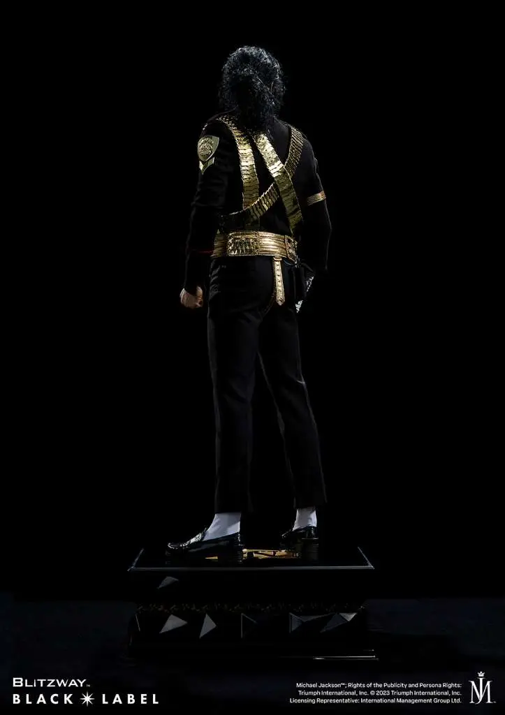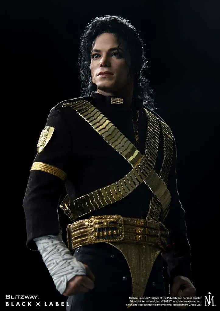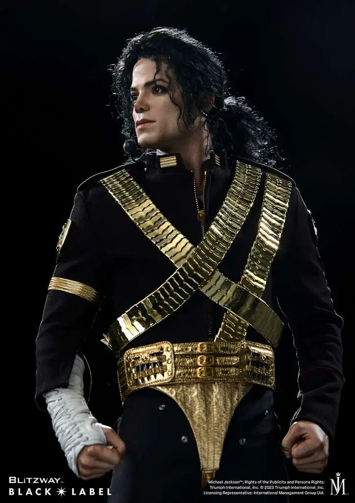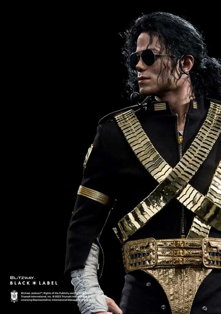 The head and body of Black Label Michael Jackson are meticulously crafted with intricate detail using resin, a material known for its long-lasting preservation and resistance to deterioration. The costume details are further enhanced with 18k gold plating, reflecting dazzling light in various lighting conditions. Advanced modeling techniques bring a lifelike appearance, capturing the grandeur of Michael Jackson's stage performances.
