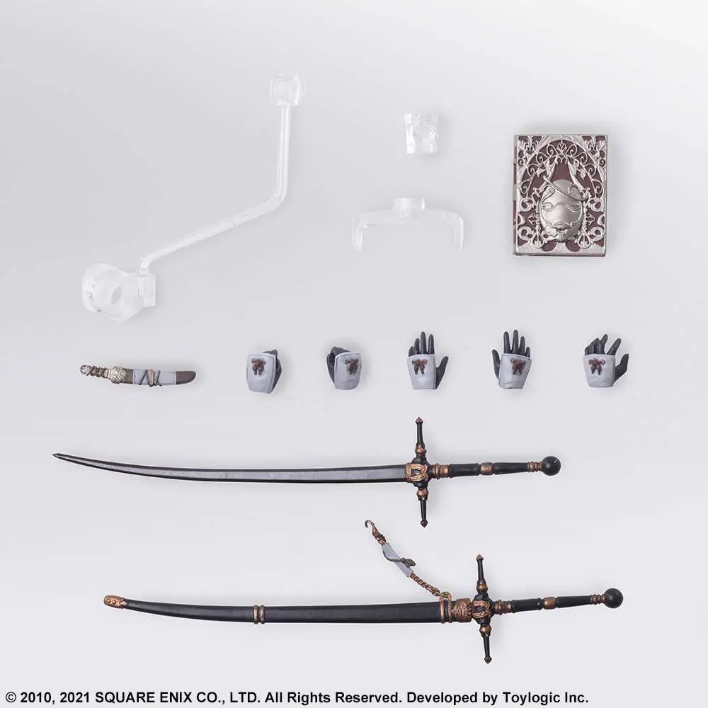 Grimoire Weiss accompanies our protagonist, with an ornate and accurately recreated cover. This tome is fully articulated, so you can pose with it either closed or opened.