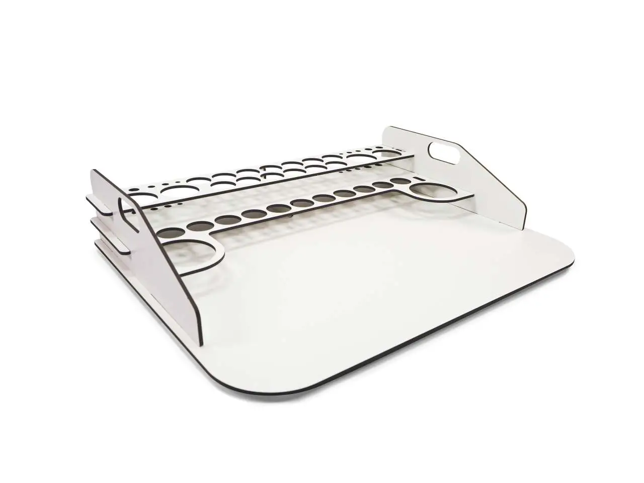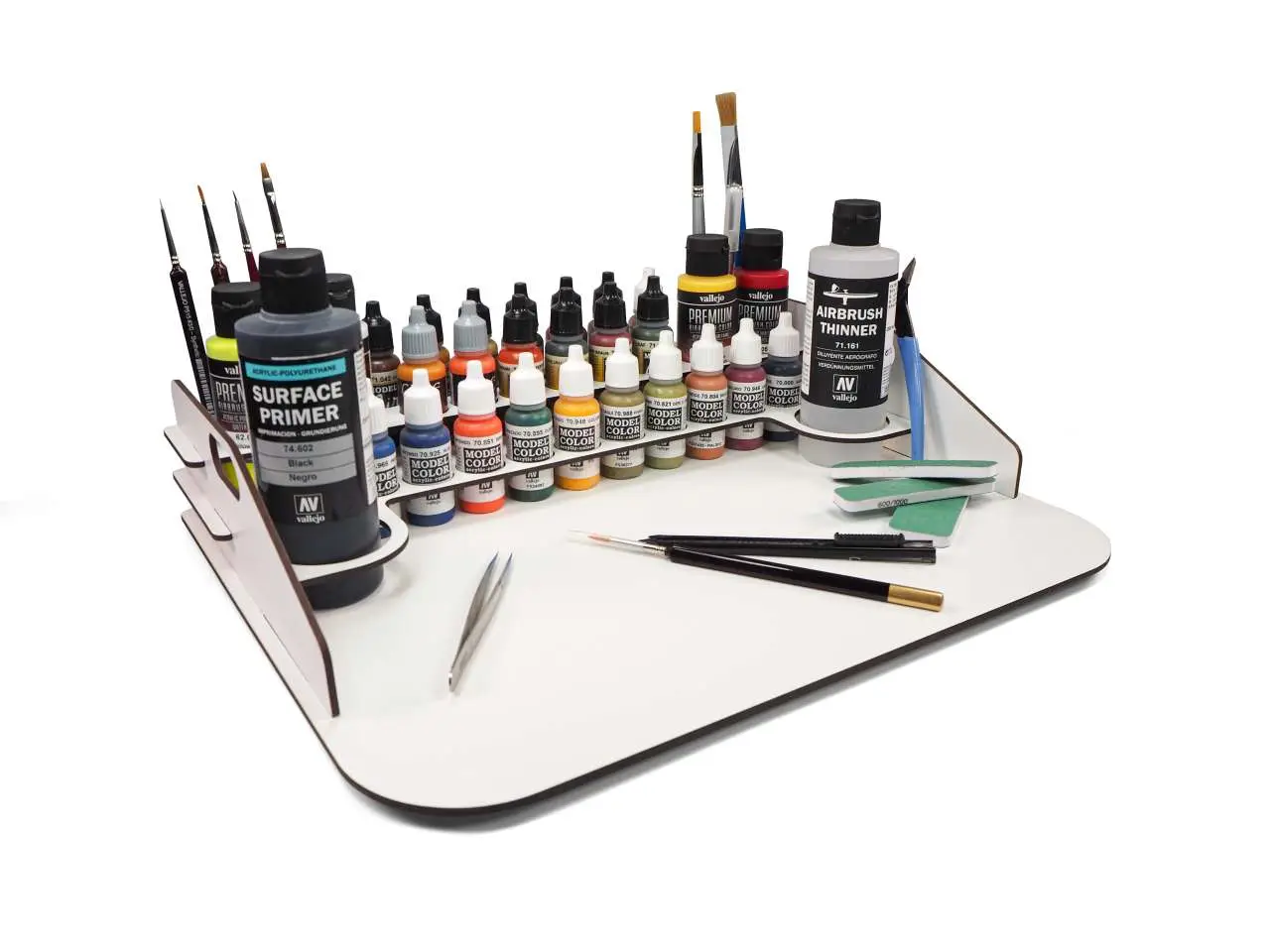 This module has space for 24 bottles of 17 ml, together with 4 bottles of 35 ml or 60 ml, 2 bottles of 200 ml and 10 brushes.