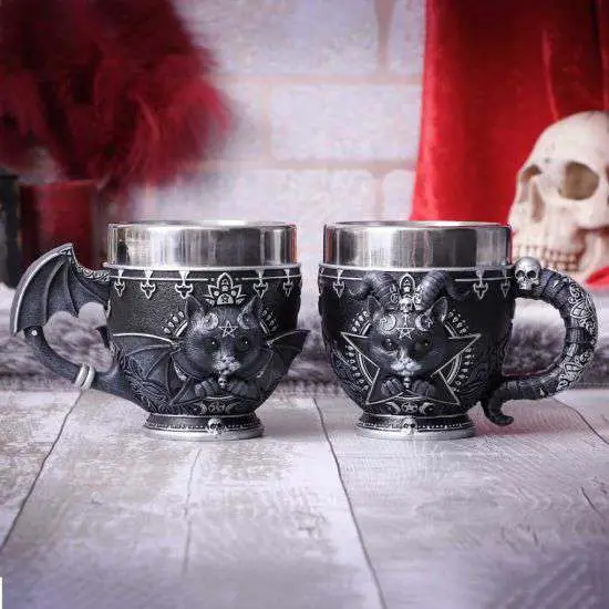 Decorated with ornate silver details and satanic symbolism, they are cast in the finest resin before being expertly hand painted.