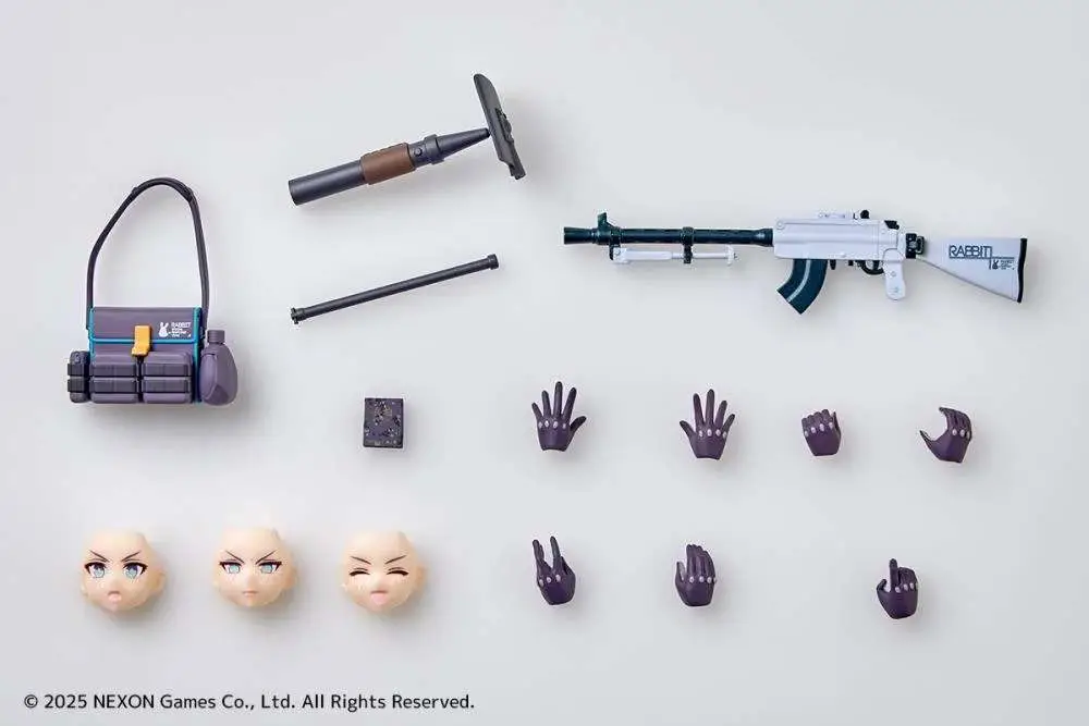 Saki, a point man belonging to the RABITT Platoon at SRT Special Academy, is joining the Revoltech series! Based on the illustrations from the game, she is sculpted in uniform equipped with a shoulder bag and grenades. She also comes with her unique weapon, the RABBIT-26 machine gun, the SRT Special Academy instructor she always carries, and the shovel mortar she holds in the Memorial Lobby.