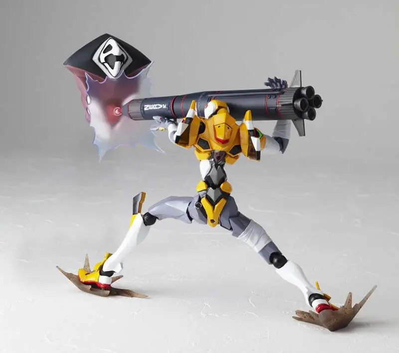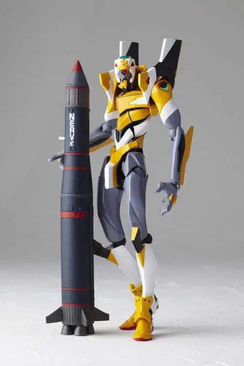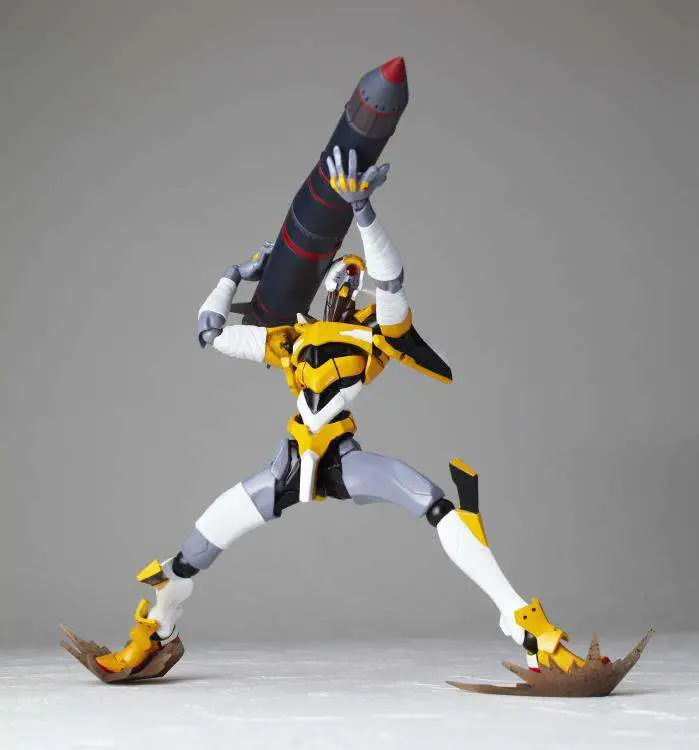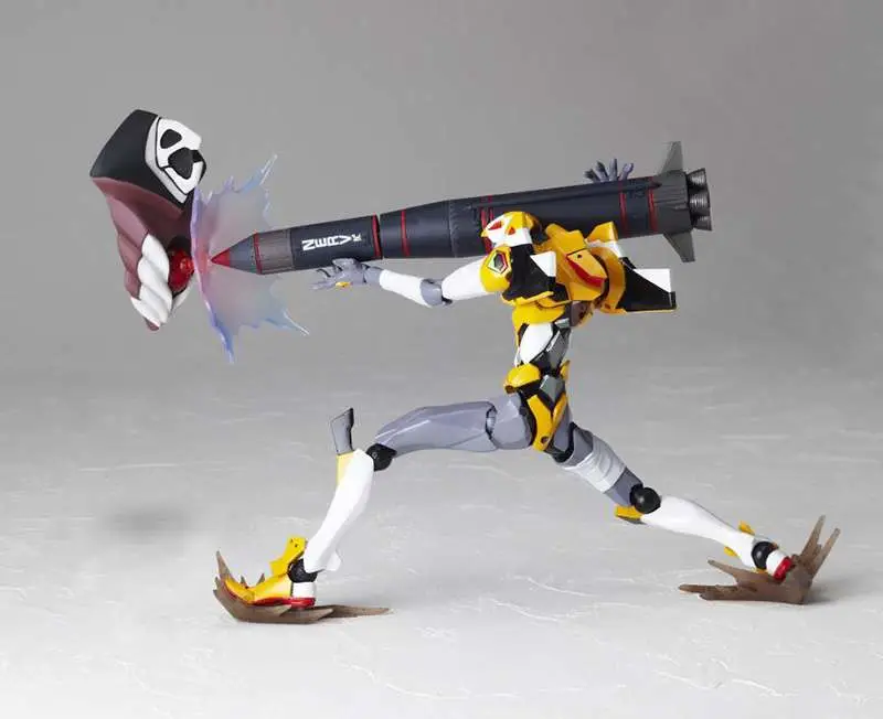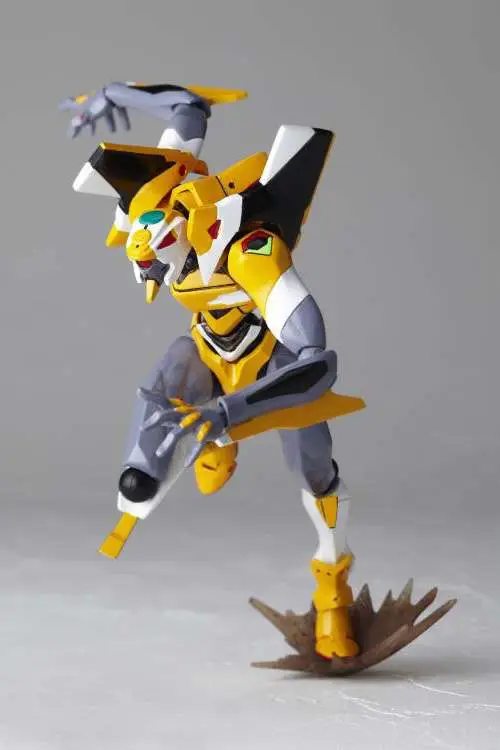 The Revoltech EVA Unit-00 is back! Standing about 5.50 inches tall, the Revoltech EVA Unit-00 is jointed like crazy for all kinds of insane action poses! It's equipped with two extra upper arms, two extra forearms, and an extra right thigh with "bandages," and twelve interchangeable hands, an umbilical cable, an AT field, two chest effects parts, a piece of the Tenth Angel, and a really big N2 missile! It's also got a display stand set with two joints to show it off to its best advantage.