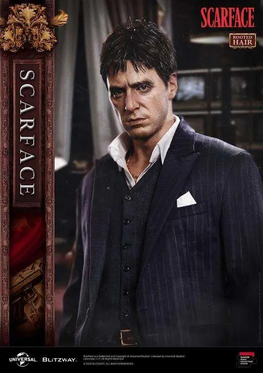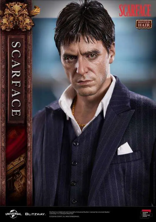 Pacino's commanding presence and intense gaze, masterfully depicted in "Scarface," are meticulously recreated through resin head sculpts and Blitzway's eye insertion techniques.