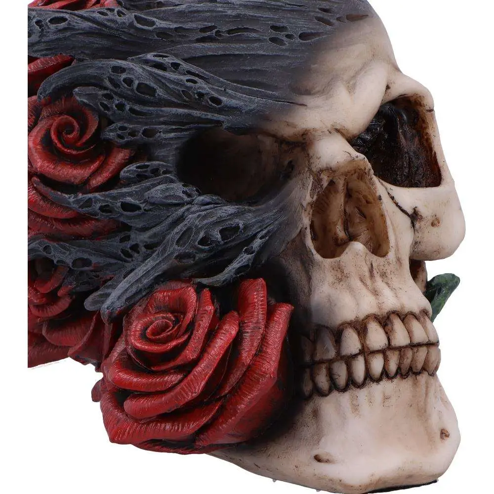 Soul Rose A Symbolic Skull with Soulful Beauty Soul Rose is a beautifully crafted resin skull that captures the balance between life and death. Featuring a skull with ethereal black smoke rising over vibrant red roses, this design symbolizes the fleeting nature of life and the mystery of death. Hand-painted with a realistic bone-colored finish, the skull contrasts with the deep red roses, while the swirling smoke adds a mystical touch. Perfect for those who appreciate symbolic art, Soul Rose is a poignant reminder of lifes fragility. Its an ideal addition to any gothic or fantasy collection, and comes securely packaged in a gift box, making it a thoughtful gift for collectors.