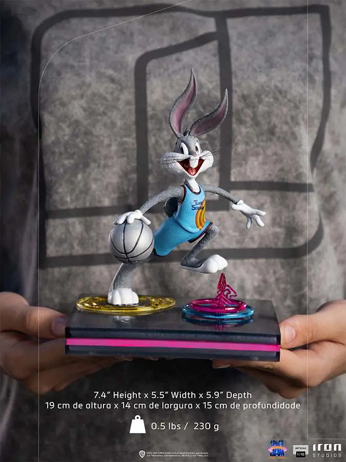 One of the world's best-known cartoon characters joins the basketball icon, LeBron James, along with his old friends from Looney Tunes animations, on a virtual reality basketball court. They need to play a basketball game where, if they win, the prize will be their freedom and their way back to their world. Derived from the new Space Jam: A New Legacy movie, Iron Studios proudly presents its "Bugs Bunny Art Scale 1/10 - Space Jam: A New Legacy" statue, featuring the most iconic animation bunny of all time.