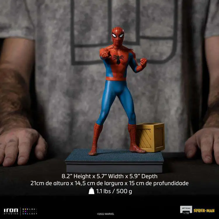 From the '60's Spider-Man animated series comes to life this iconic scene. Spider-Man is shown pointing towards an imposter. Standing over 8 inches tall, this statue is an amazing nod to the classic cartoon and character!
