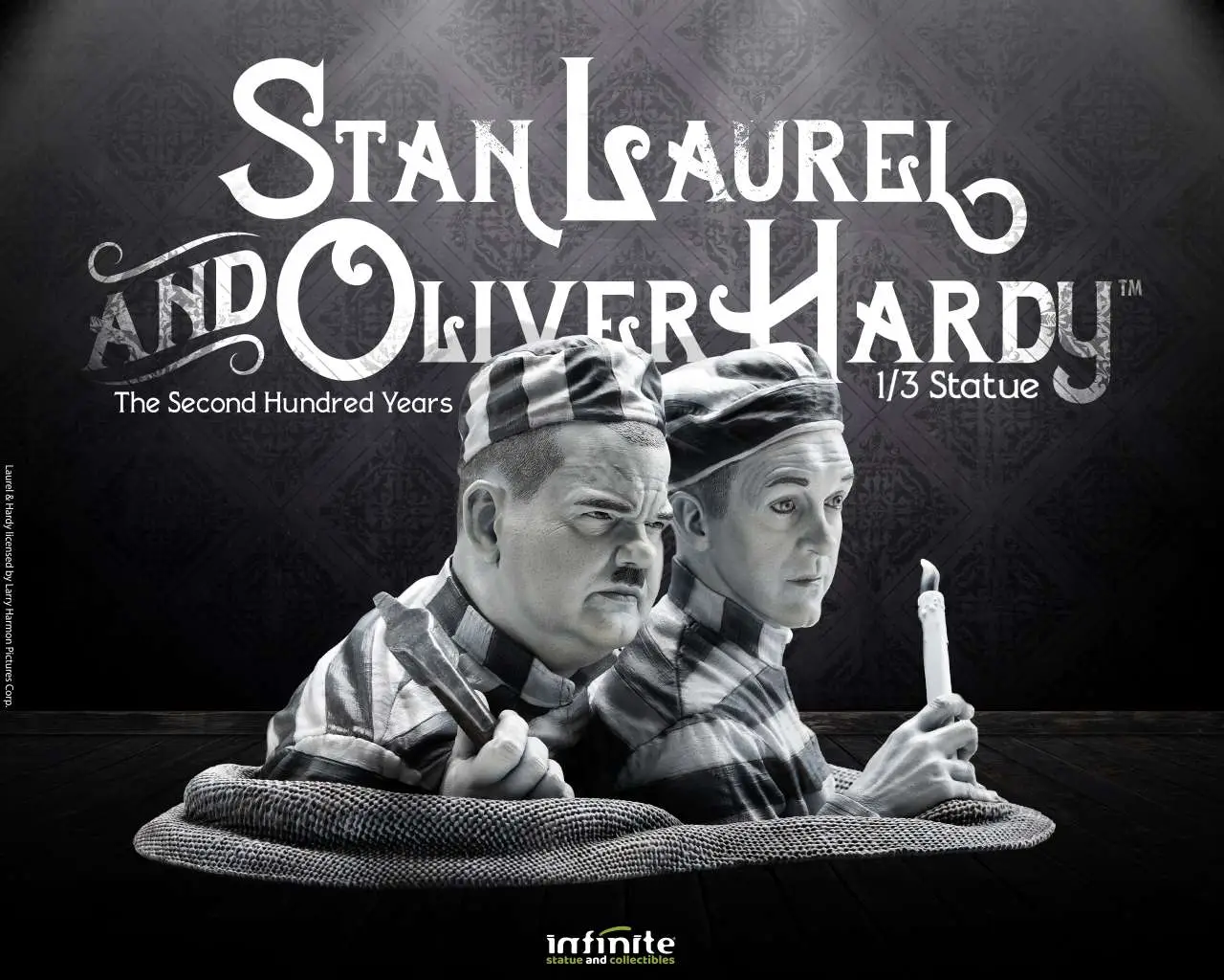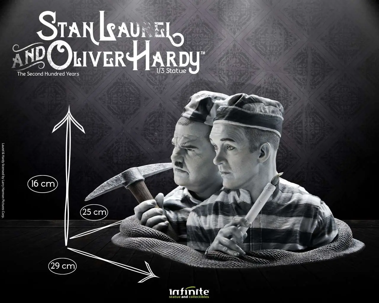 From the comedy duo Laurel & Hardy in one of their most famous short films "The Second 100 Years" from 1927, Infinite Statue & Collectibles dedicates this spectacular statue to the two greats of laughter. Made of hand-painted resin with great detail, Stan Laurel & Oliver Hardy 1/3 Statue is an artistic homage inspired by the comic gags and timeless humor of Stan Laurel and Oliver Hardy, and captures them with dynamism and hyperrealism in an original and exclusive 3D sculpture. Limited Edition.