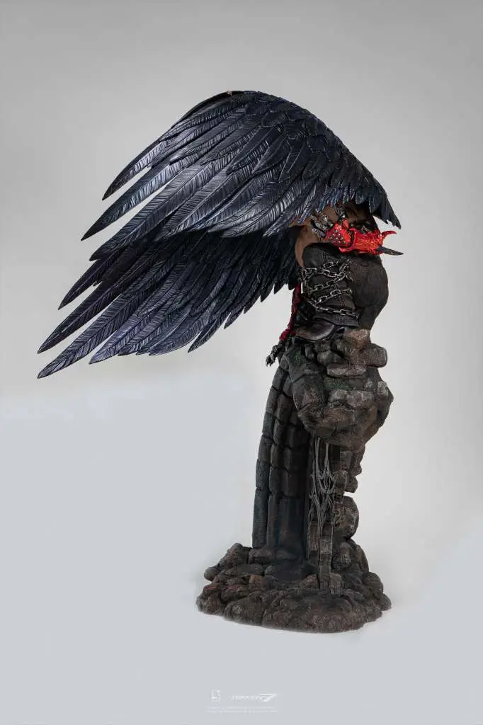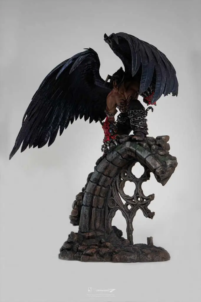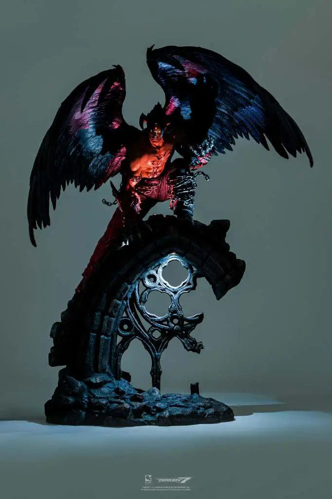 The statue itself is a massive 1/4 scale masterpiece statue of Devil Jin spreading his demonic wings and features all the high-details of the characters with an LED system that light-up his eyes, laser beam on his forehead and base. (betteries not included)