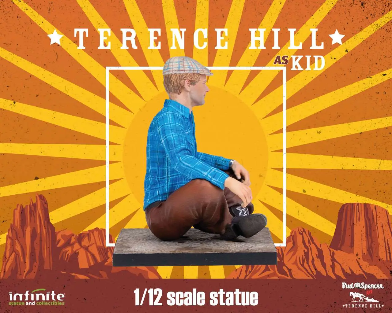 Infinite Statue & Collectible dedicates to the fastest gunslinger in the West, Terence Hill, a fantastic new sculpture. Terence Hill as Kid 1/12 statue is in fully detailed pvc and hand painted. Inspirated by the movie “Watch Out, We're Mad!” (Altrimenti ci Arrabbiamo), Terence Hill as Kid is in 1/12 scale and can be collected together with Bud Spencer as Ben 1/12 statue and the legendary Dune Buggy 1/12 scale model.